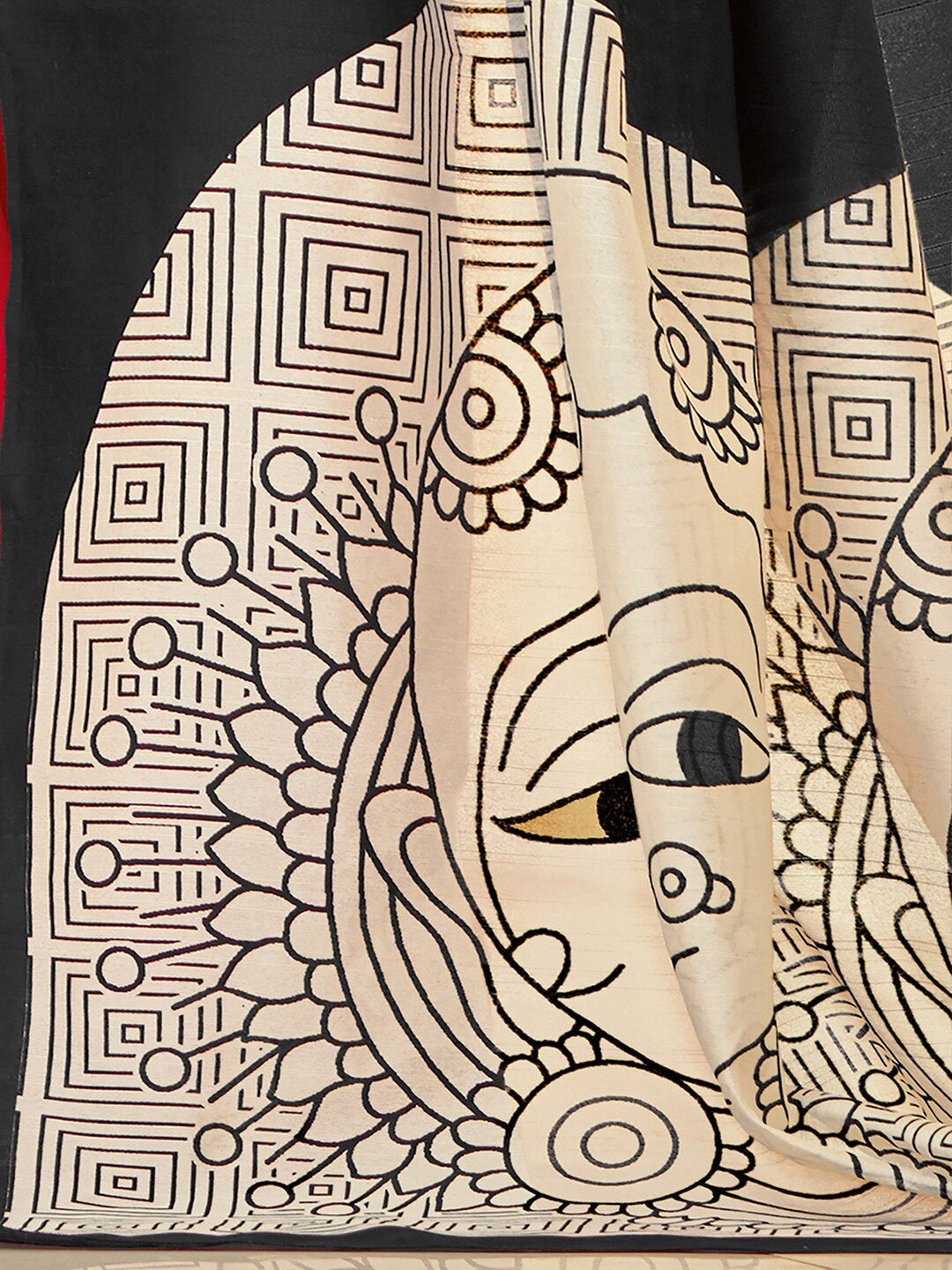 Kalini Geometric Printed Bhagalpuri Saree Product Details Design Details Red and black bhagalpuri saree Geometric printed saree with no border...