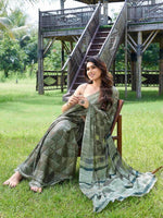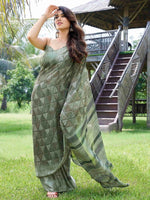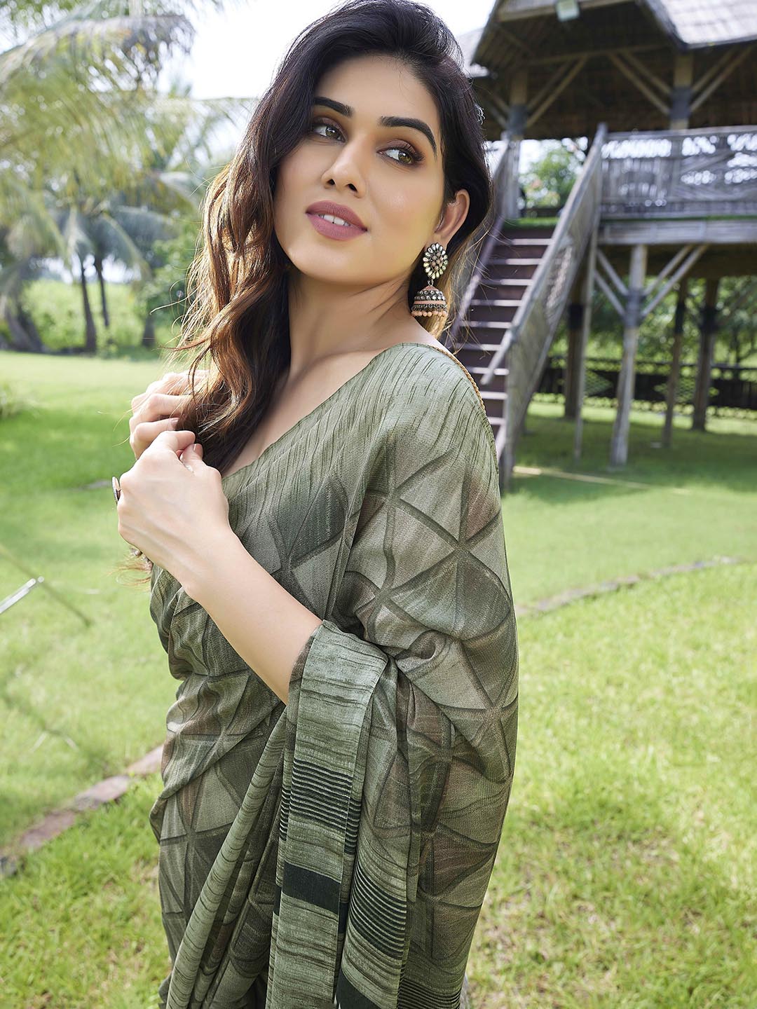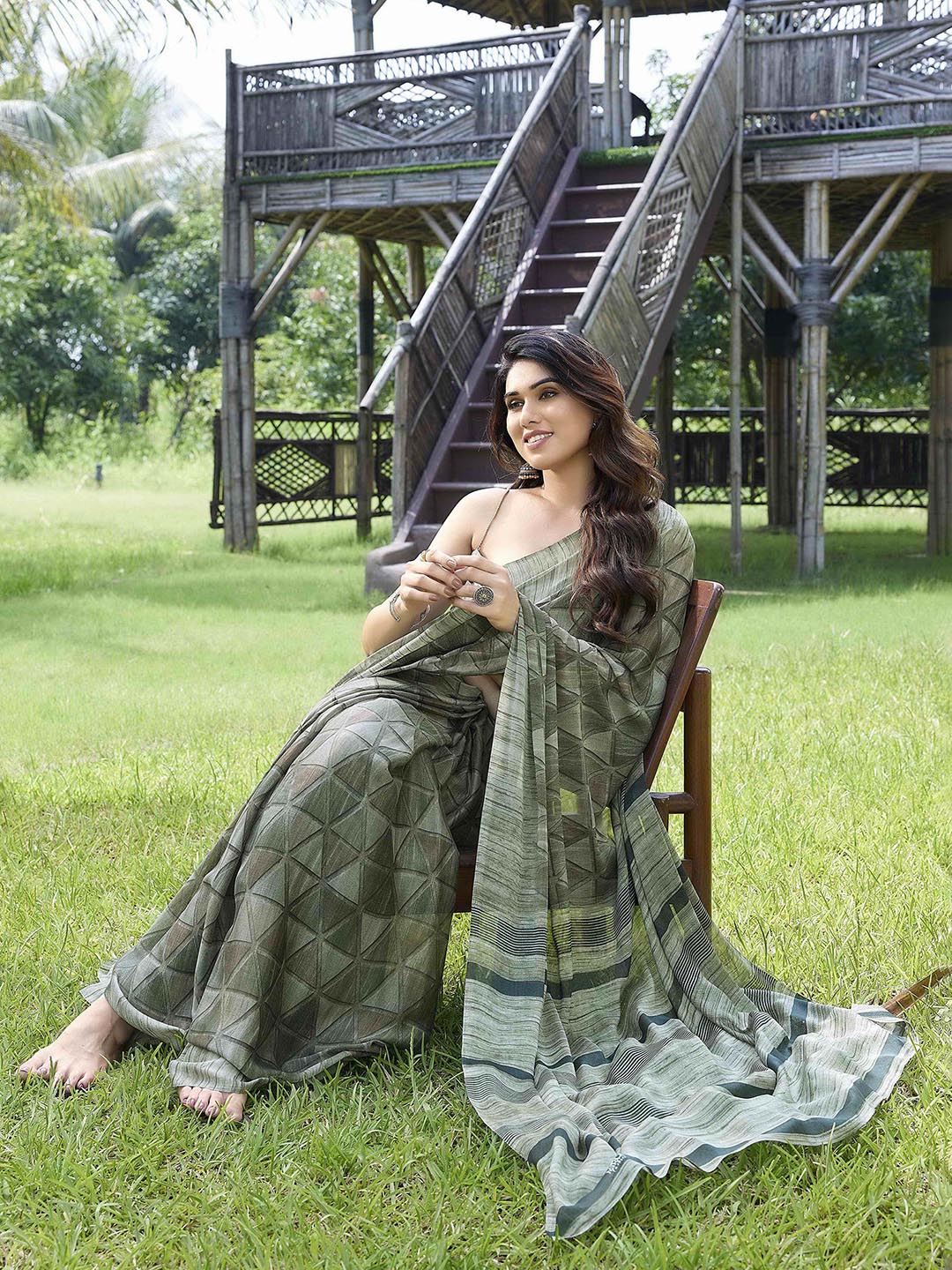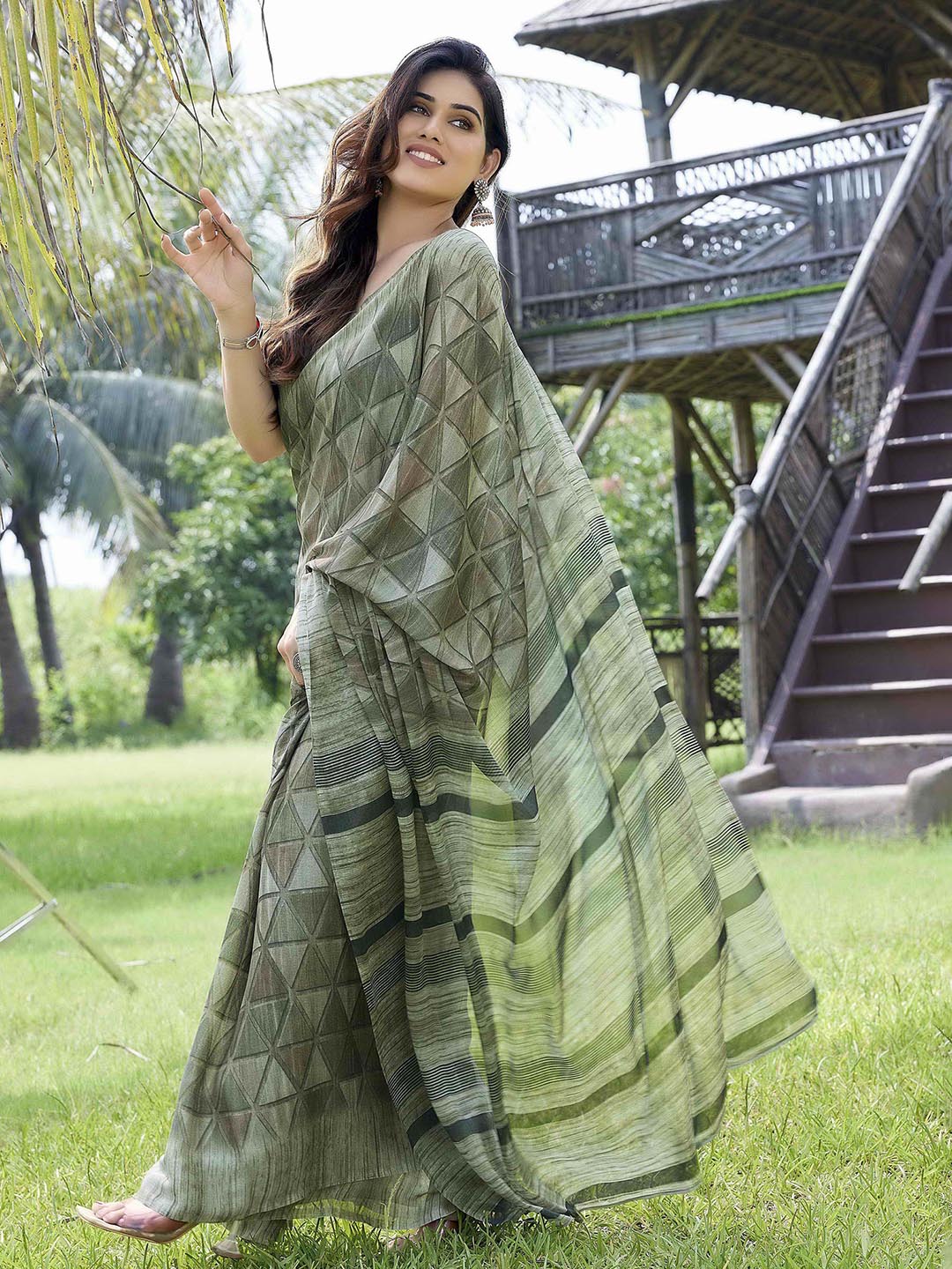 Kalini Geometric Printed Poly Chiffon Saree Product Details Design Details Dusty green and brown saree Geometric printed saree with printed bo...