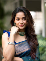 Kalini Geometric Woven Design Zari Banarasi Saree Product Details Design Details Teal Blue Zari Banarasi Saree  Geometric woven design saree w...