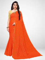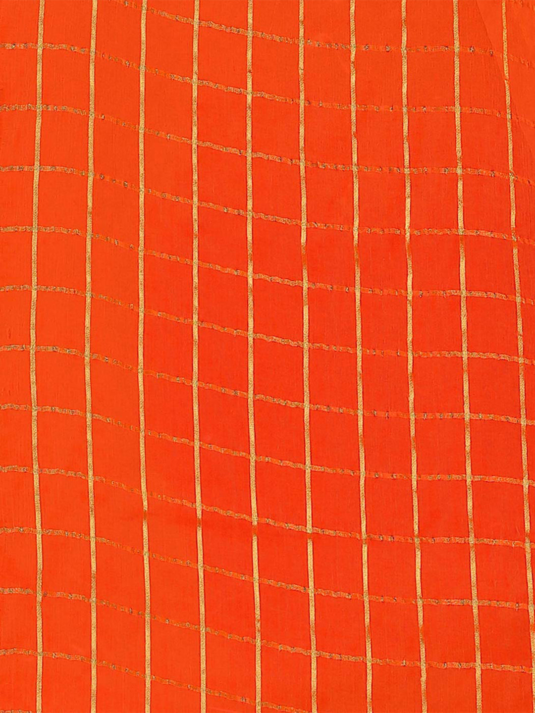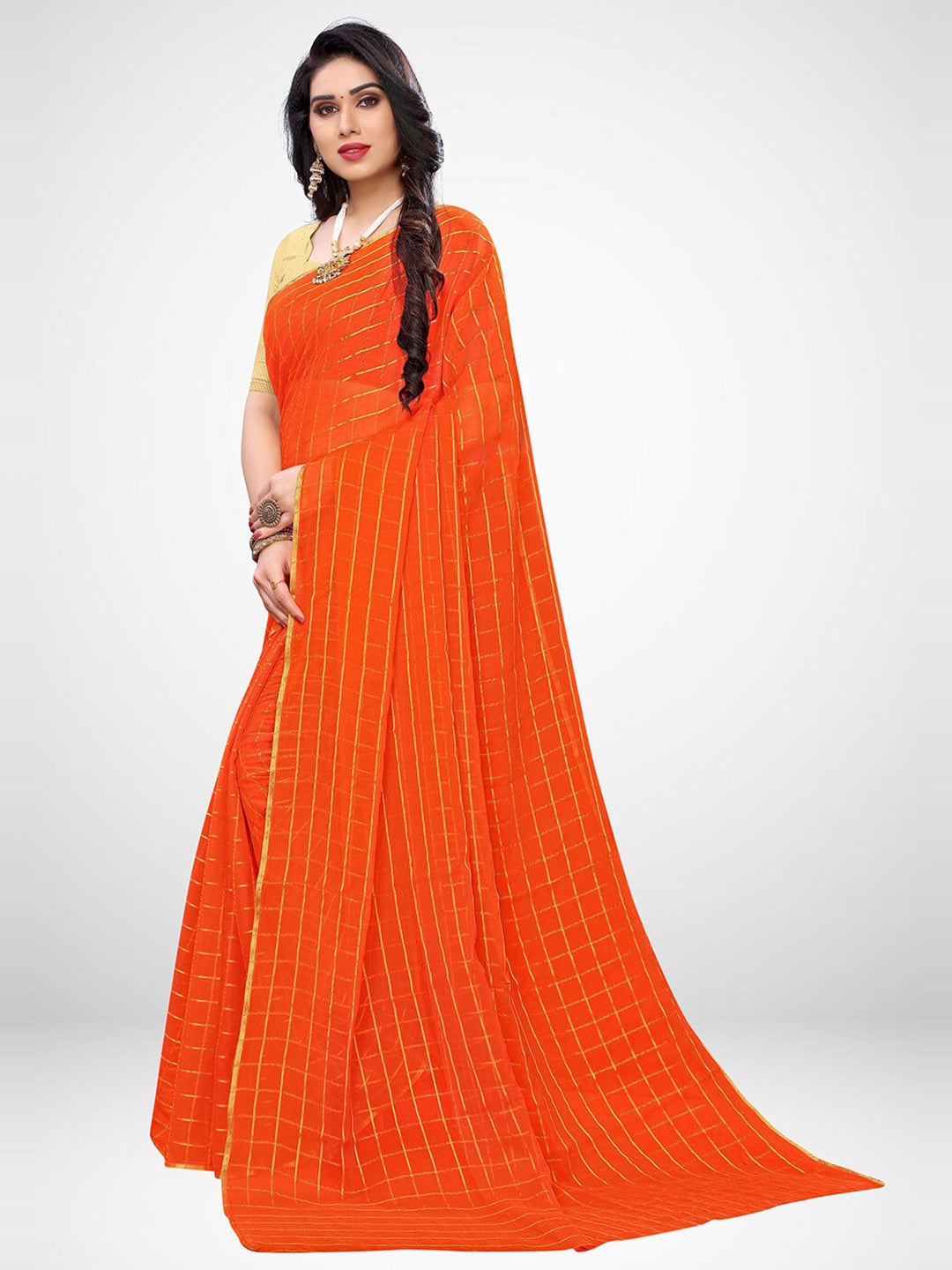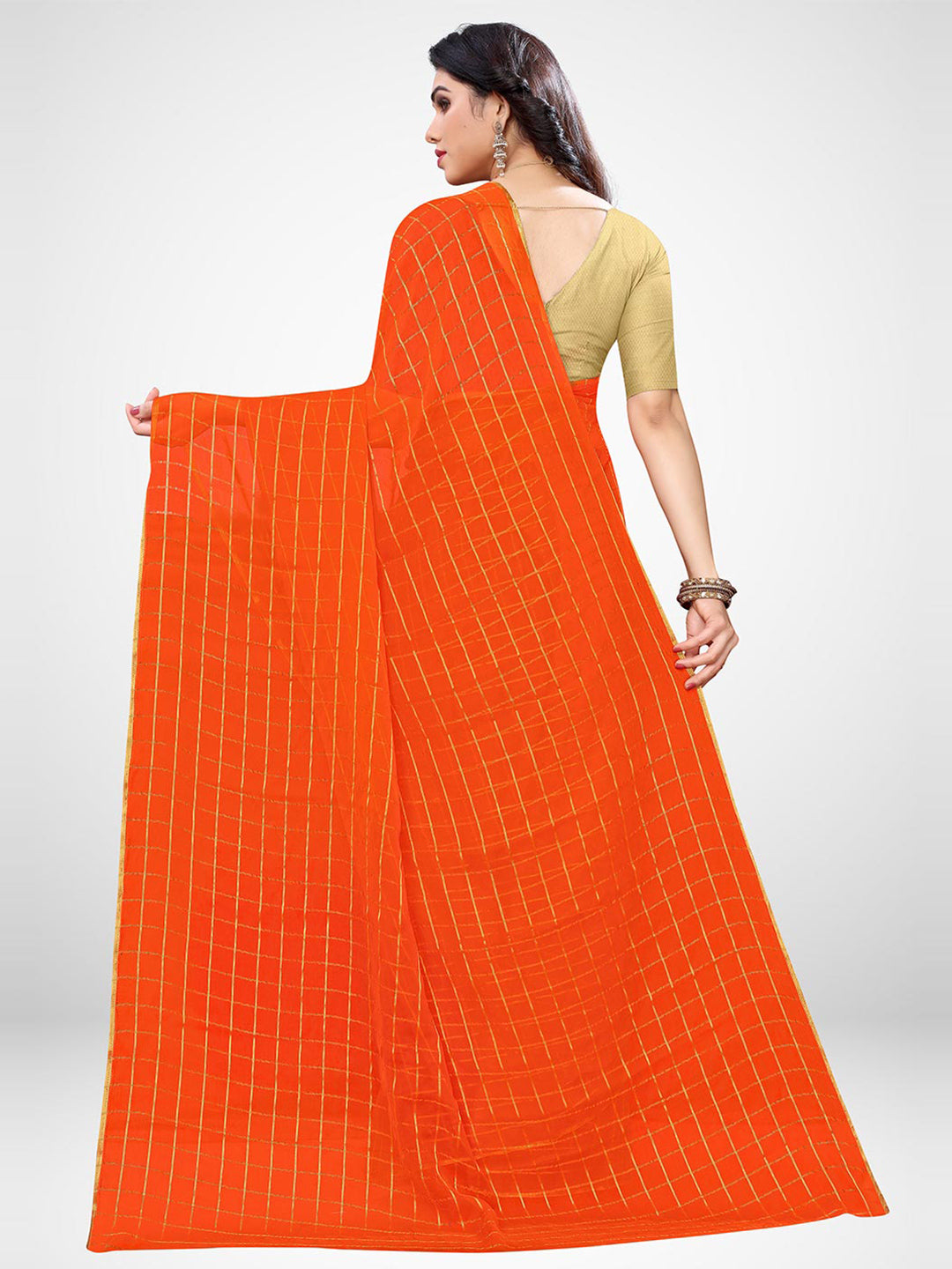 Kalini Orange & Gold-Toned Checked Chiffon Zari Saree - Distacart