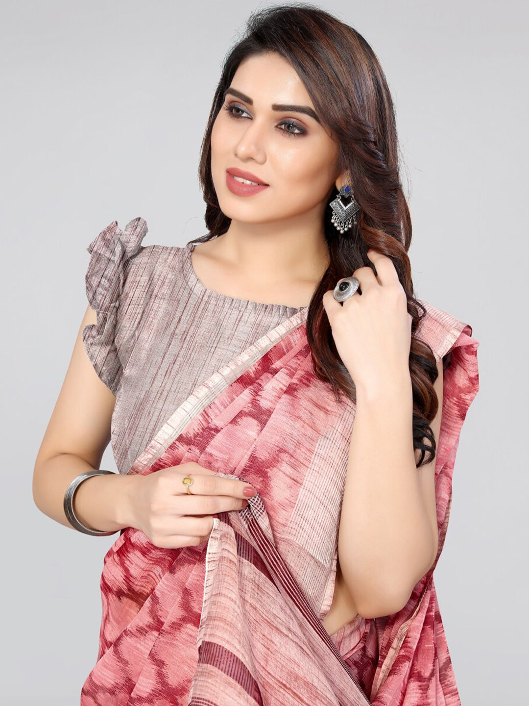 Kalini Printed Chiffon Saree Product Details Design Details Geometric printed saree with printed border  The saree comes with an unstitched blo...