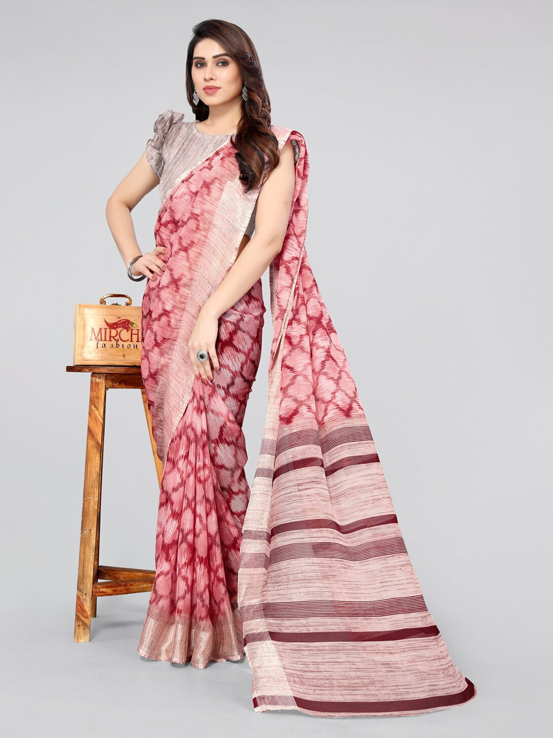 • Geometric printed saree with printed border