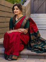 Kalini Red & Green Woven Design Zari Kanjeevaram Saree