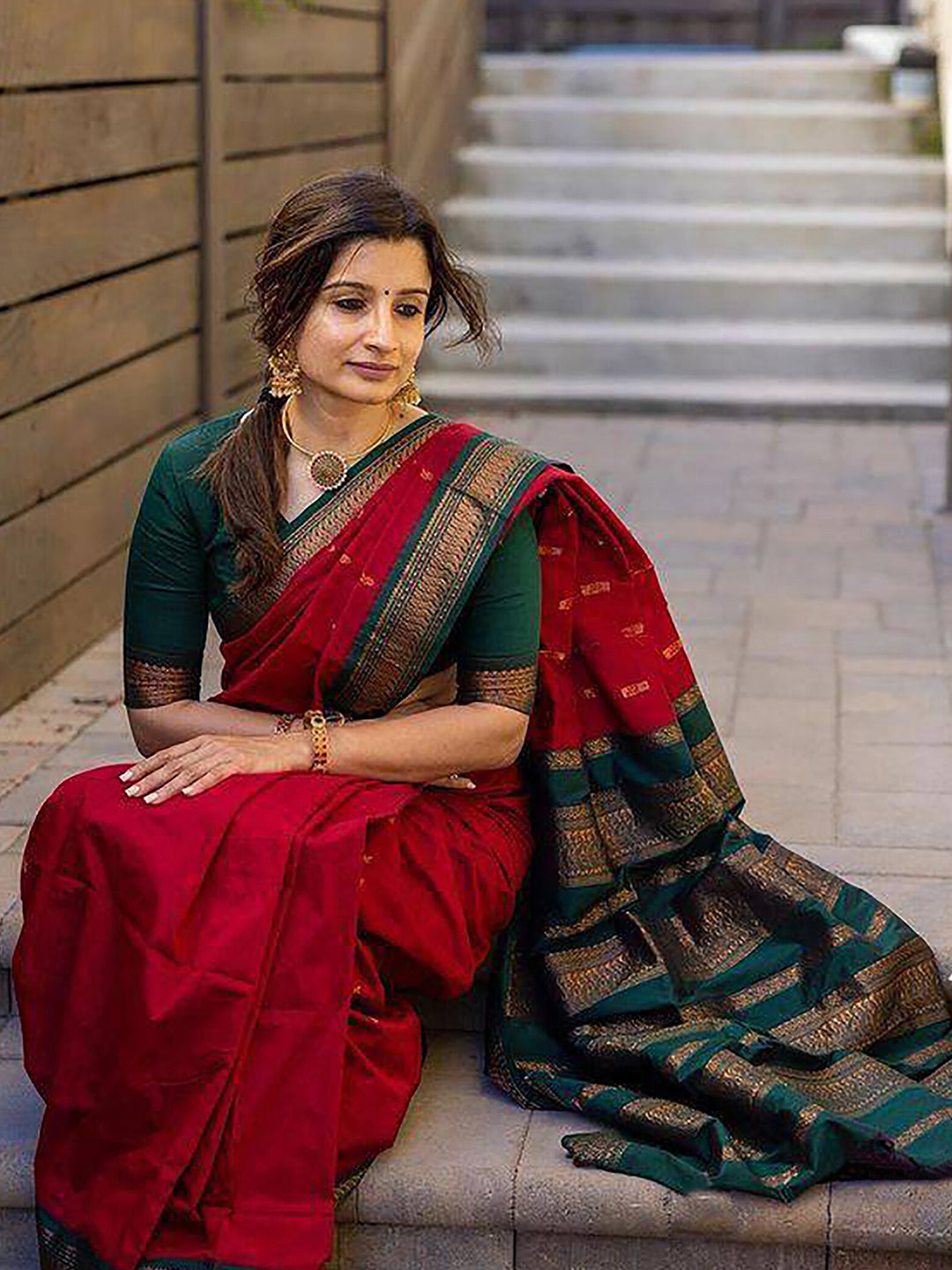Kalini Red & Green Woven Design Zari Kanjeevaram Saree - Distacart