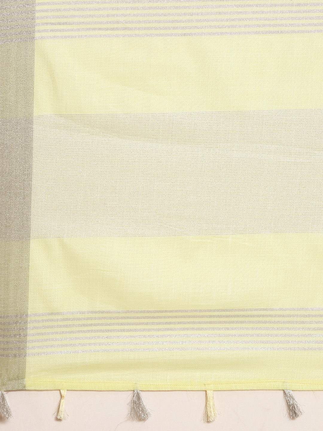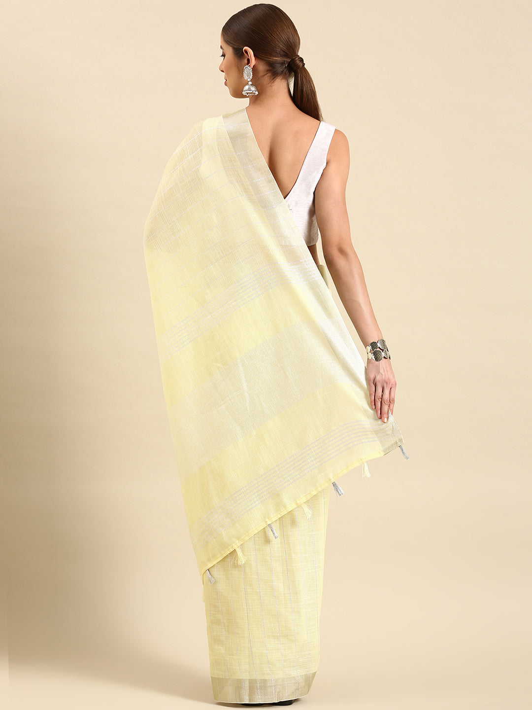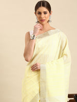 Kalini Woven Design Striped Zari Pure Linen Saree Product Details Design Details Yellow saree Striped woven design saree with solid border  Ha...