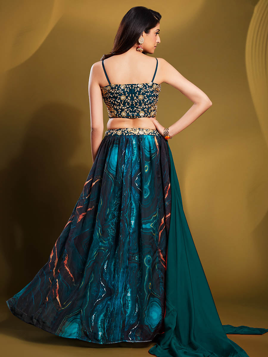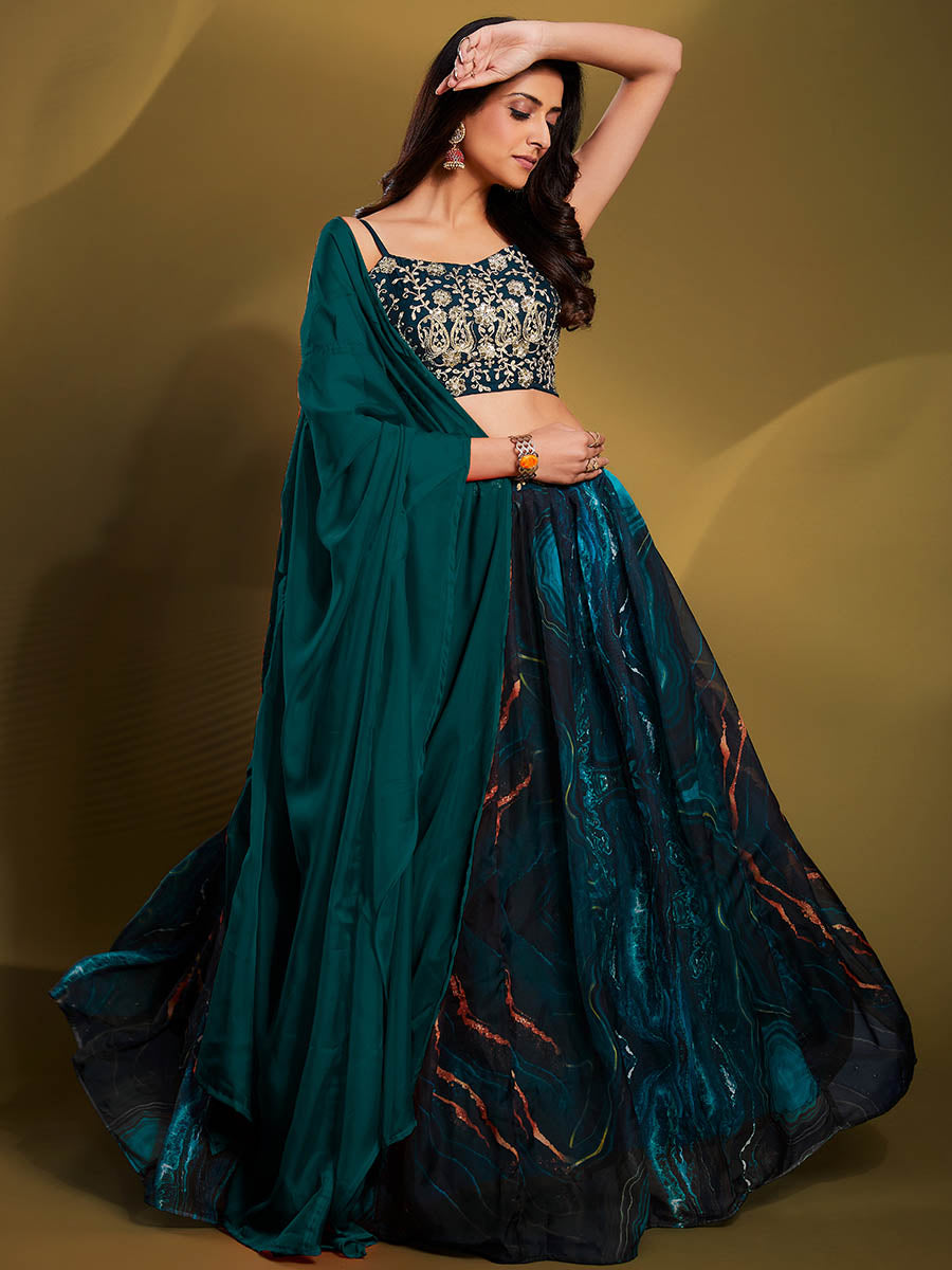 Myra Teal Art Silk Embroidered Designer Lehenga - Distacart