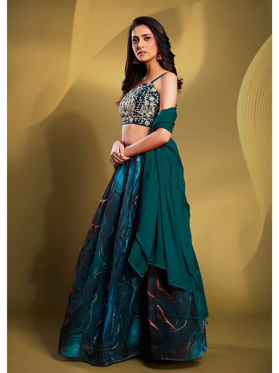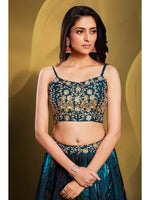 Myra Teal Art Silk Embroidered Designer Lehenga Teal Art Silk Embroidered Designer Lehenga features a art silk blouse and organza fabric lehenga wi...