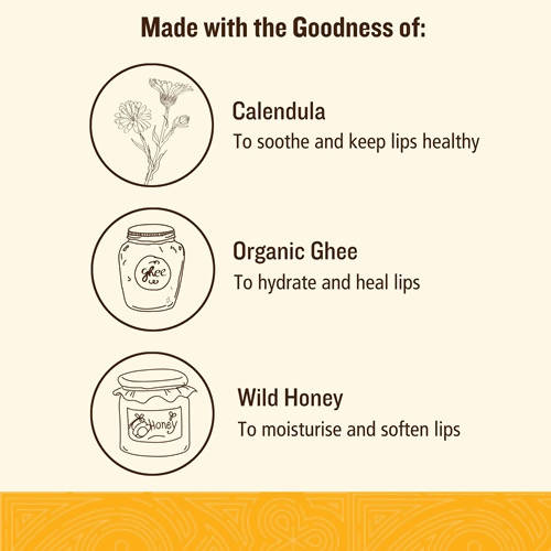 Prepared with fresh extracts of Hibiscus flower, Organic Ghee and Wild Honey, this Ayurvedic formulation will help in healing and moisturizing your lips. Along with the goodness of Almond Oil and Jojoba Oil, it makes for the perfect lip care for dry weather. Your lips will feel nourished, soft, and supple.