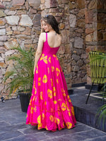 Lorenvalley Magenta Rayon Floral Print Fit & Flare Gown