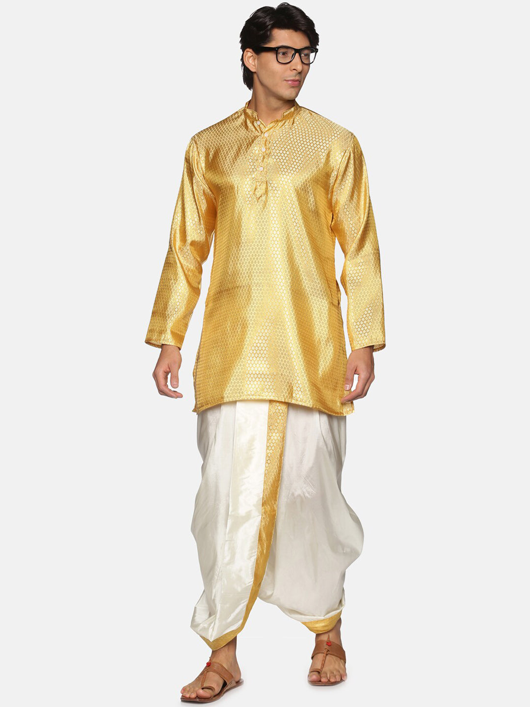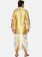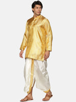 Gold-toned & white woven design Kurta with Dhoti Pants
