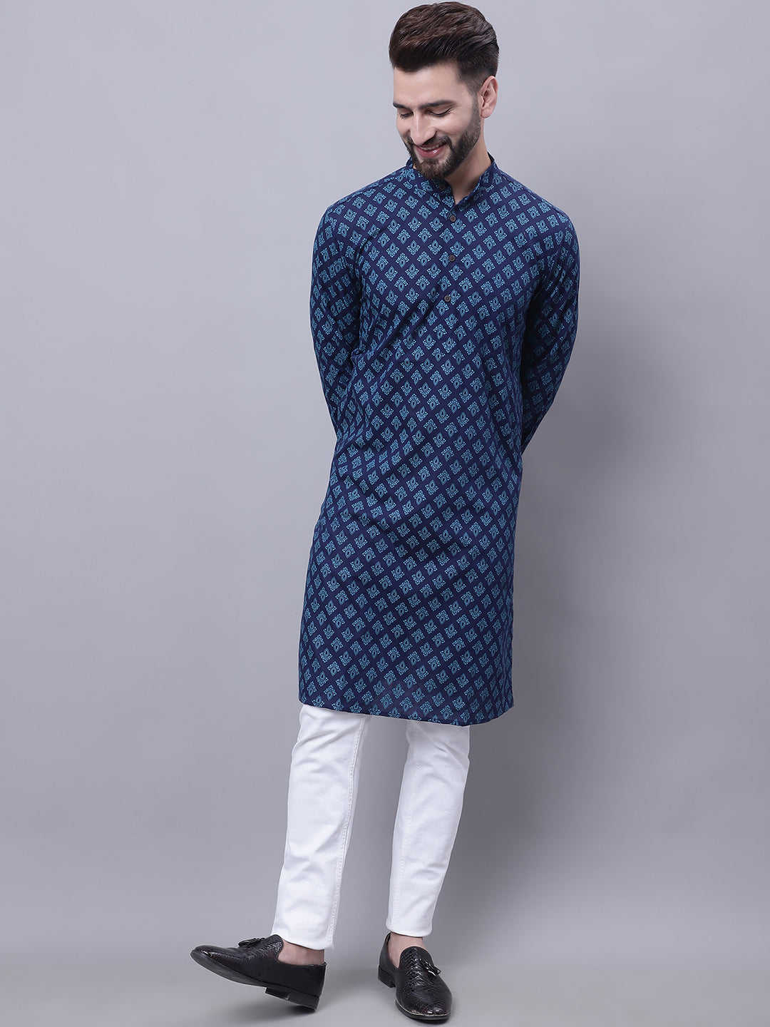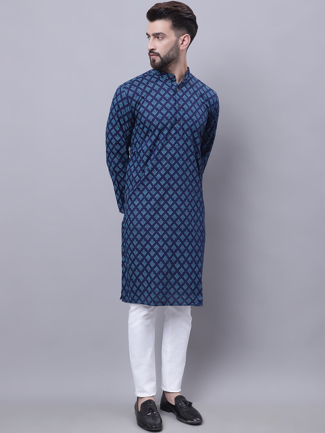 Even Apparels Blue Pure Cotton Kurta With Band Collar