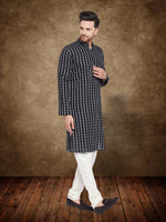 Even Apparels Men's Pure Cotton Black Check Kurta