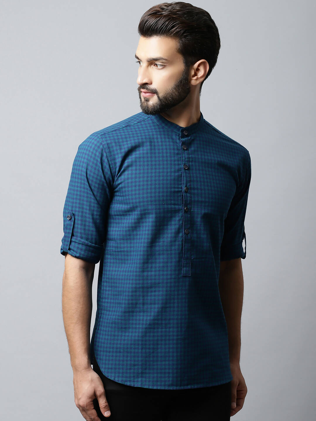 Even Apparels Navy blue Color Pure Cotton Men's Kurta With Side Placket (CHK1056) - Distacart