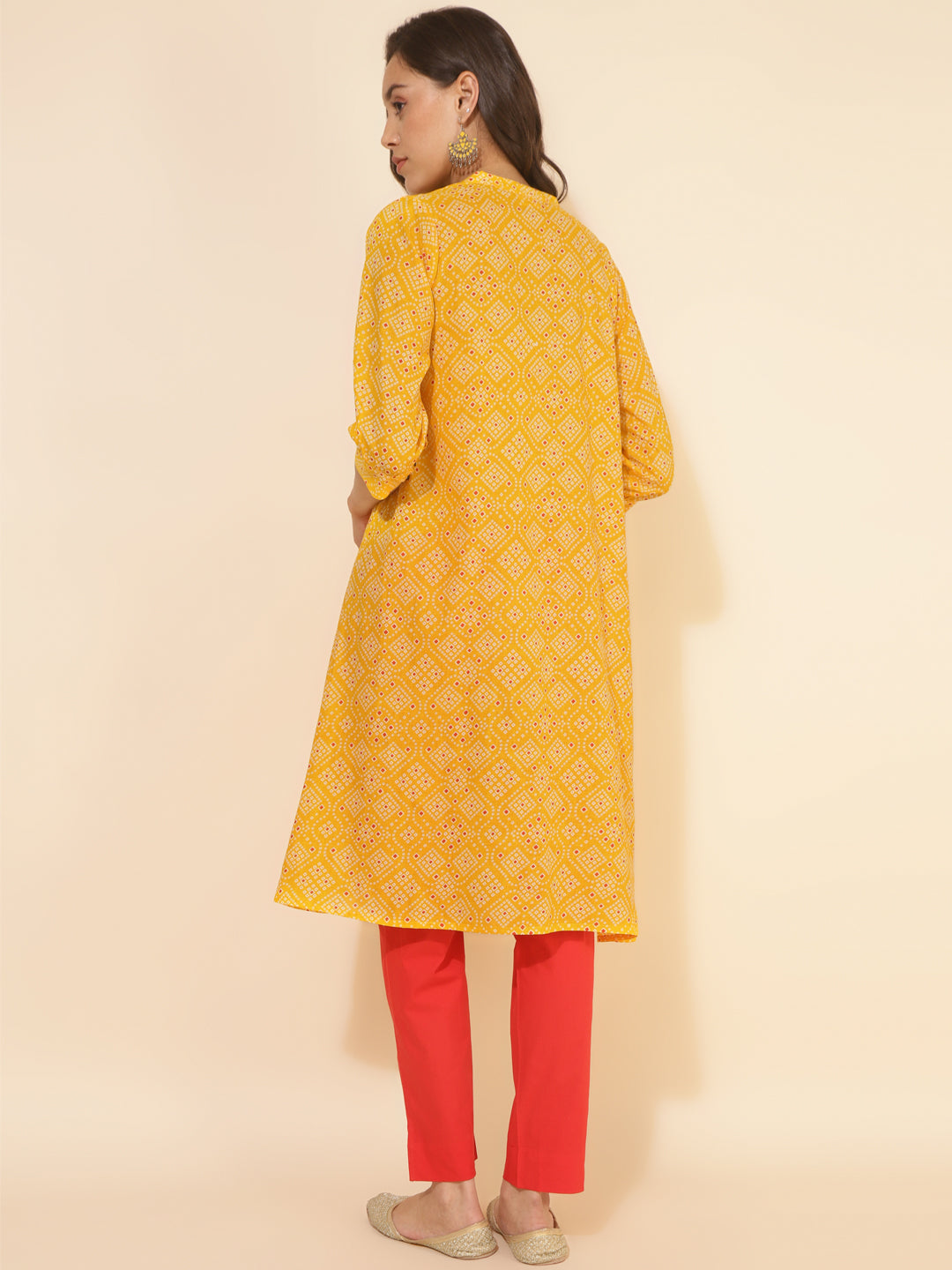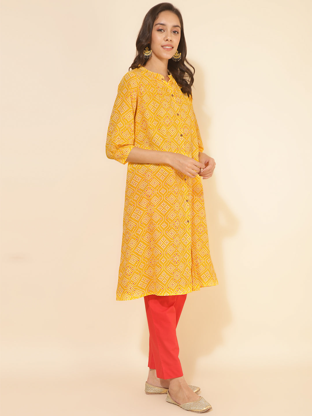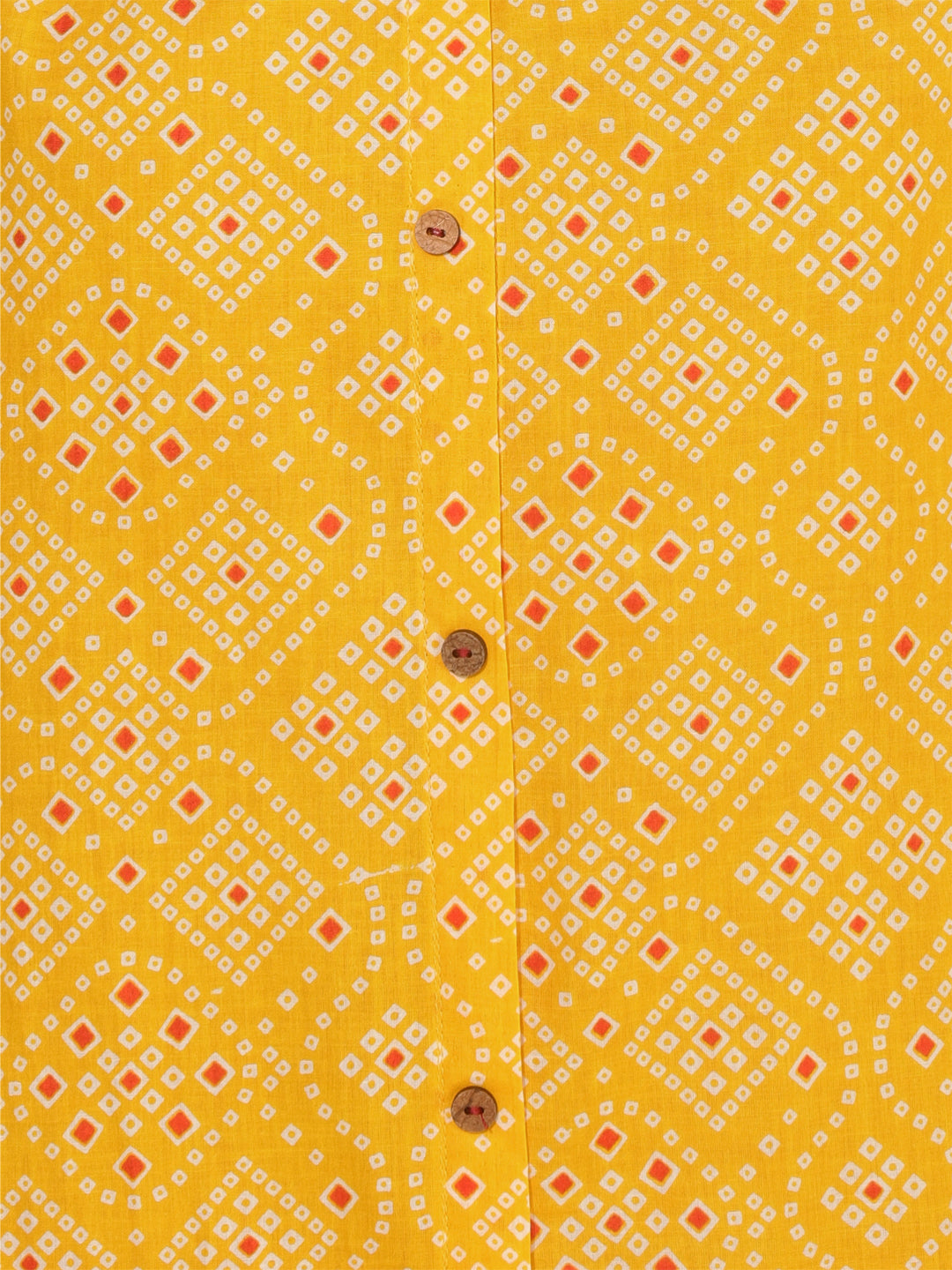 Janasya Yellow Cotton Bandhani Printed Casual Kurta - Distacart