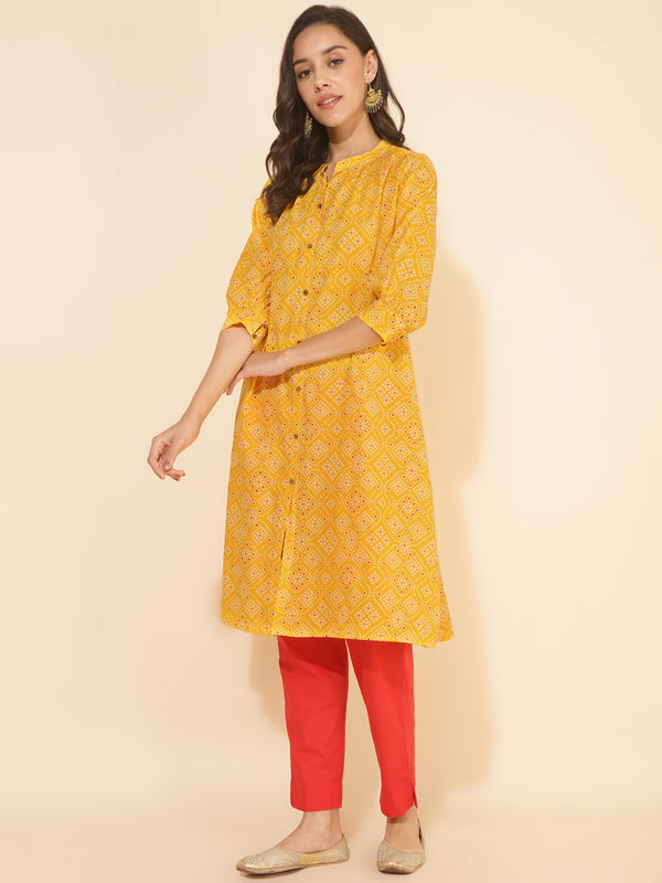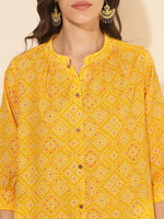 Janasya Yellow Cotton Bandhani Printed Casual Kurta