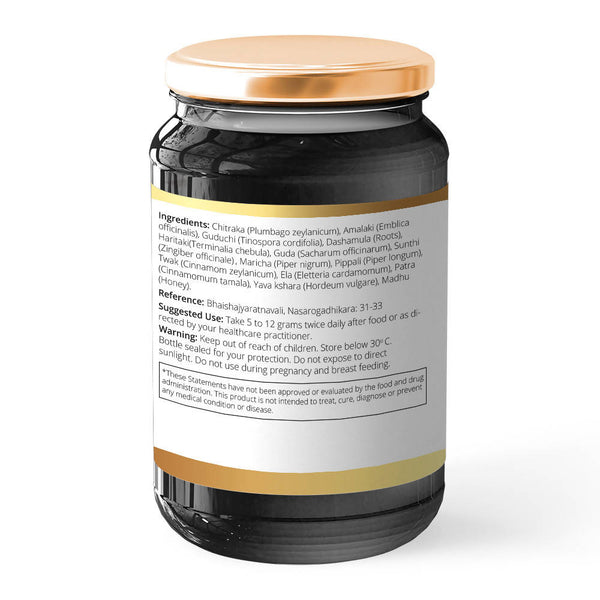 Ingredients: Chitraka, Amalaki, Guduchi, Dashamula, Haritaki, Maricha, Pippali, Honey, Guda