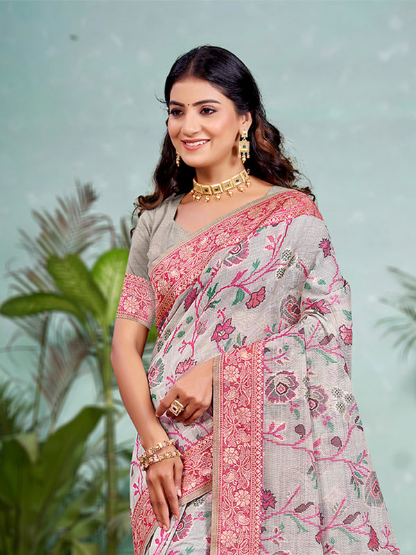 Sangam Prints Gray Cotton Silk With Meena Woven Work Traditional Saree - Free Size