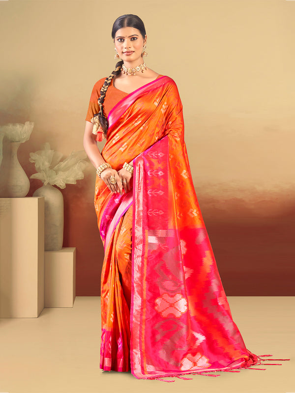 Sangam Prints Orange Silk Woven Work Traditional Saree - Free Size