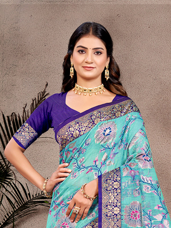 SANGAM PRINTS brings to you this saree which is made from COTTAN SILK WITH MEENA fabric and is available in attractive colours. The saree is a suitable amalgamation of style with the grace that is required from an ethnic wear. You can wear it to casual occasions as well as make it a part of your festive wear.The saree comes with a 80 cm separate blouse piece which is of the same shade as that of saree. It is unstitched and can be altered according to your desired style and fit.Pair this saree with a clutch and a pair of fashion sandals or any casual footwear of your choice for a casual look when dressing up for a party. You can also pair it with a pair of earrings and bangles when adorning this outfit for a festive occasion. SANGAM PRINTS Sarees For Women With Blouse. This Is Saree For Women. Saree Length Is 6.30 Mtr Including Blouse Piece. Blouse Is Unstitched Fabric And 0.80 Meter. This Saree Looks Beautiful In Evening Parties.