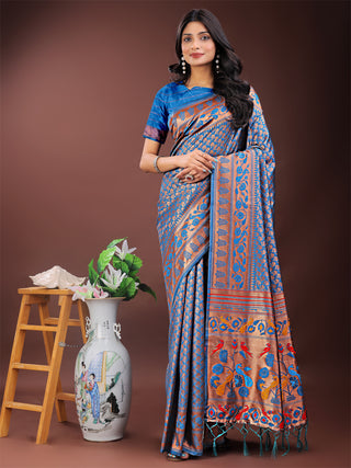 Astita Vibrant Copper & Blue Banarasi Silk Saree with Colorful Pallu - Perfect Blend of Tradition and Festive Elegance - Distacart