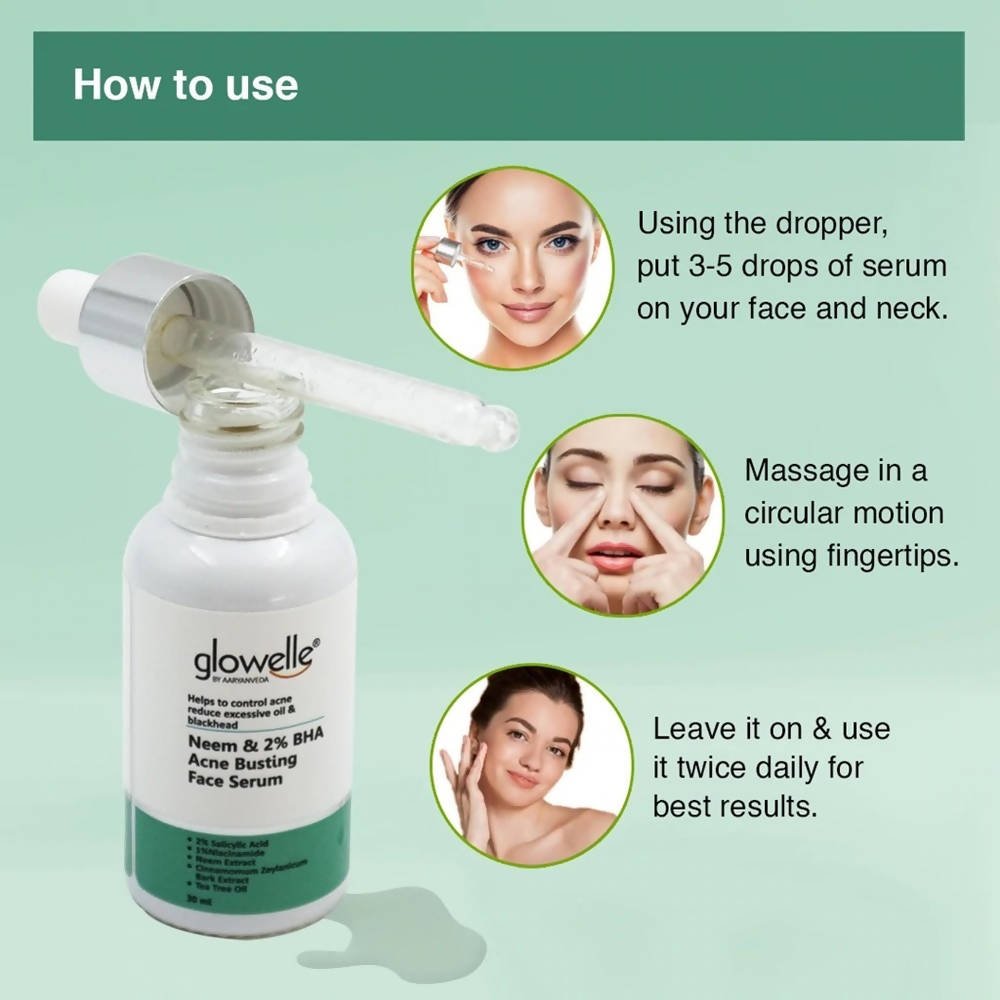 Aaryanveda Glowelle Neem & 2% BHA Acne Busting Face Serum - 30 ml