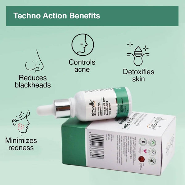 Aaryanveda Glowelle Neem & 2% BHA Acne Busting Face SerumBenefits: This serum effectively detoxifies the skin against pollutants, dirt, grime, ...