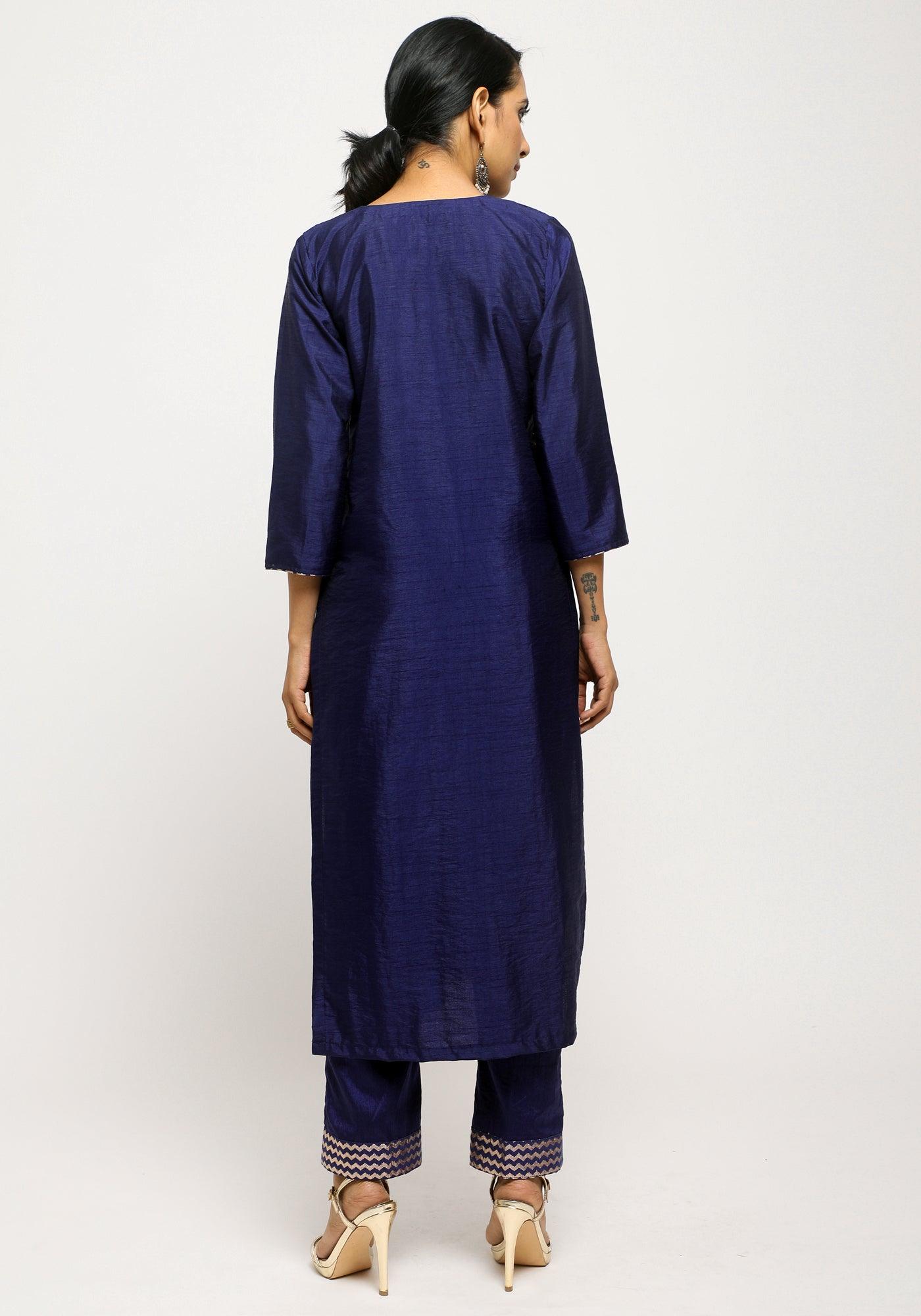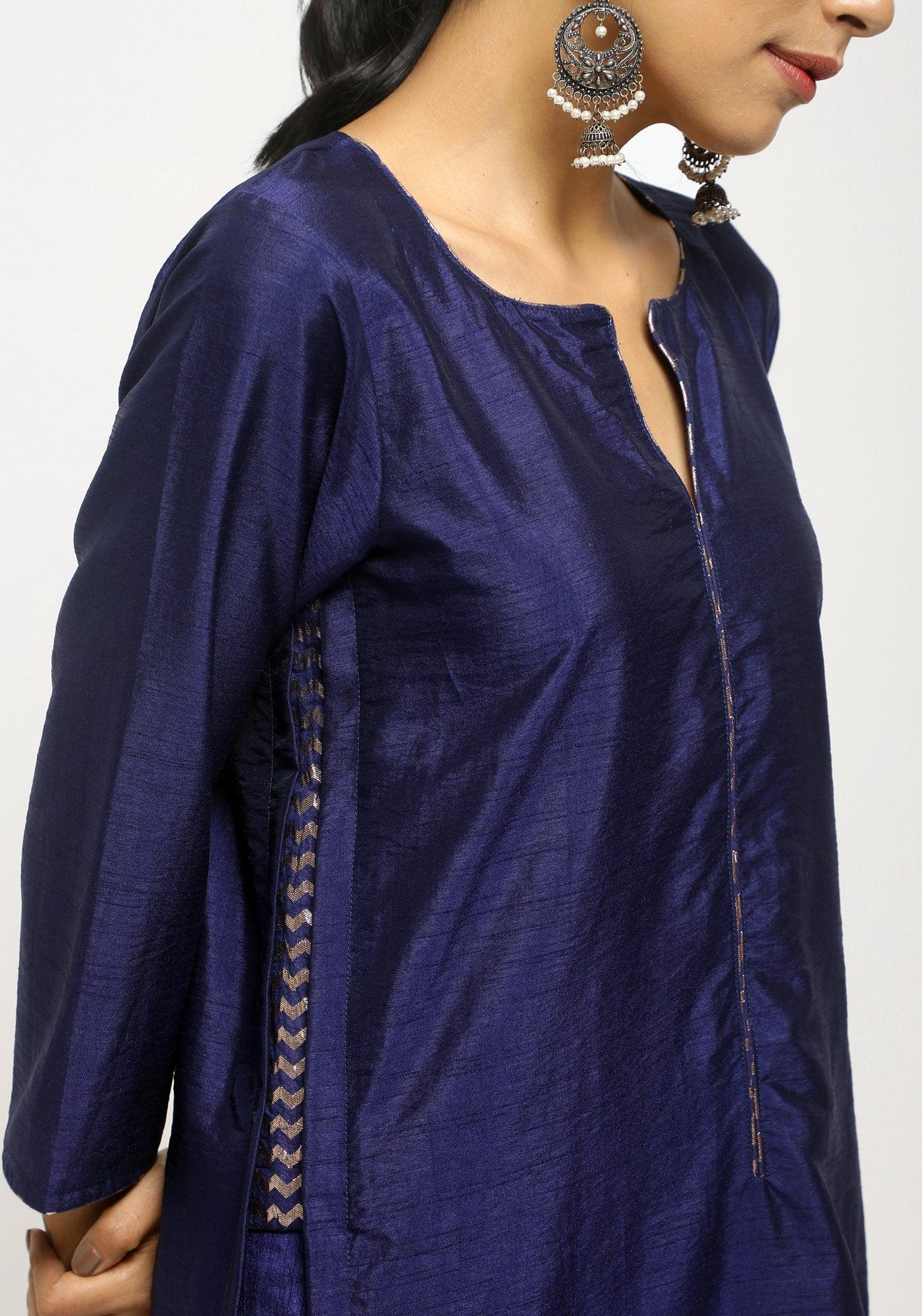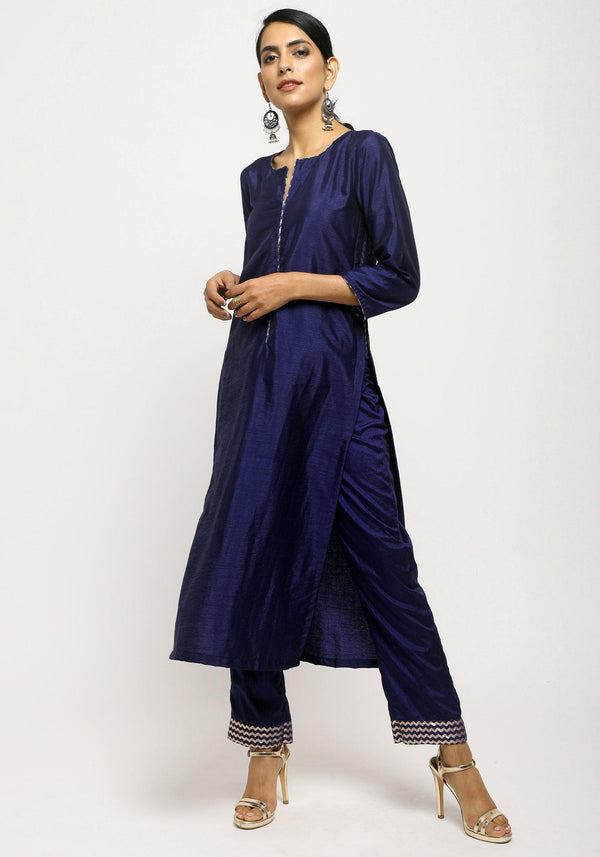 • Cotton silk kurta with gota lace highlight on sleeves, side slits and bottom hem and has lining through out.