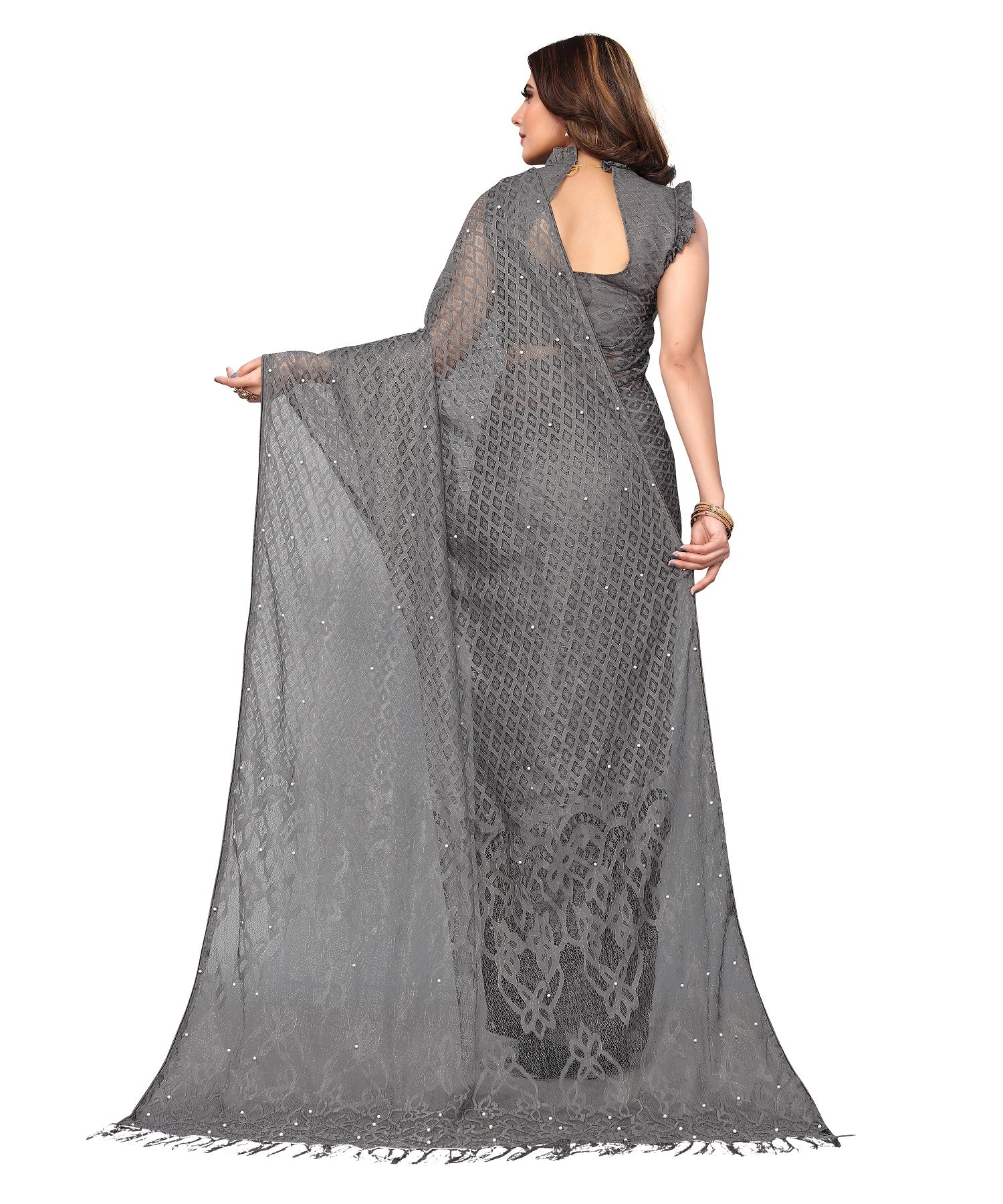Vamika Net Brasso Grey Light Weight Trendy Look Bollywood Style Saree - Distacart