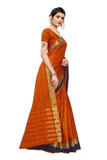Vamika Orange Cotton Silk Weaving Saree (Rimi Checks Orange)