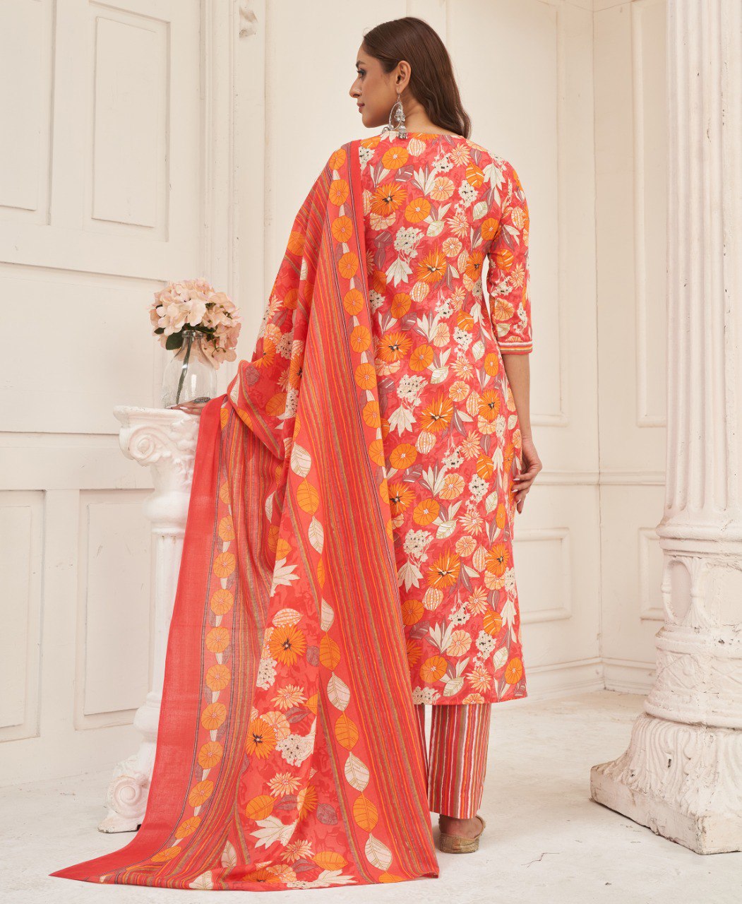 Prazu Fashion Peach Cotton Foil Printed Kurta SetAbout the Product: GENDER : Female Colour : Peach Work/Pattern : Printed Fabric : Cotton Neck Line...