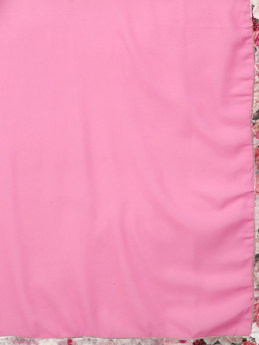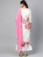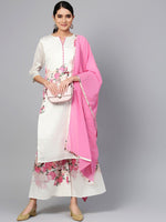 Ahalyaa Women Off-White & Pink Printed Kurta with Palazzos & Dupatta