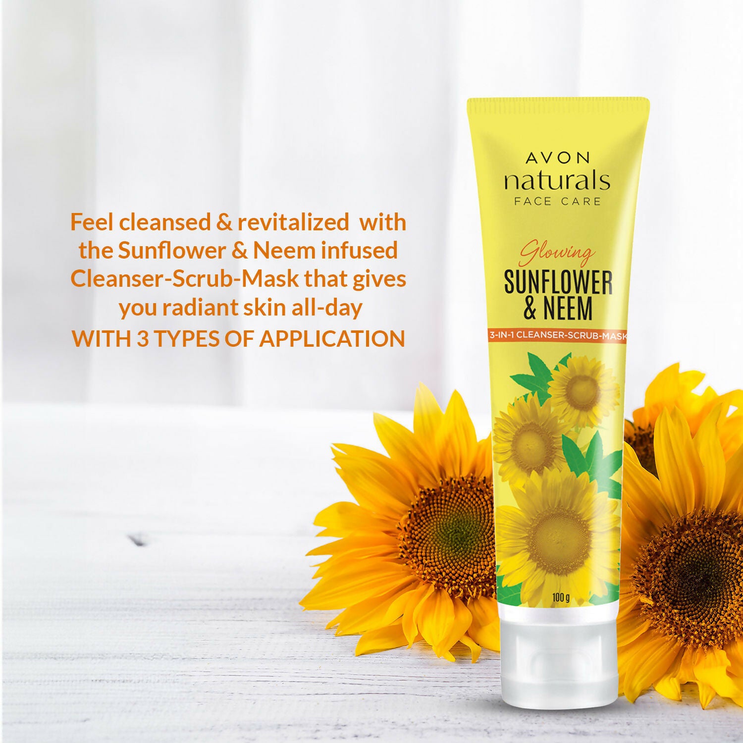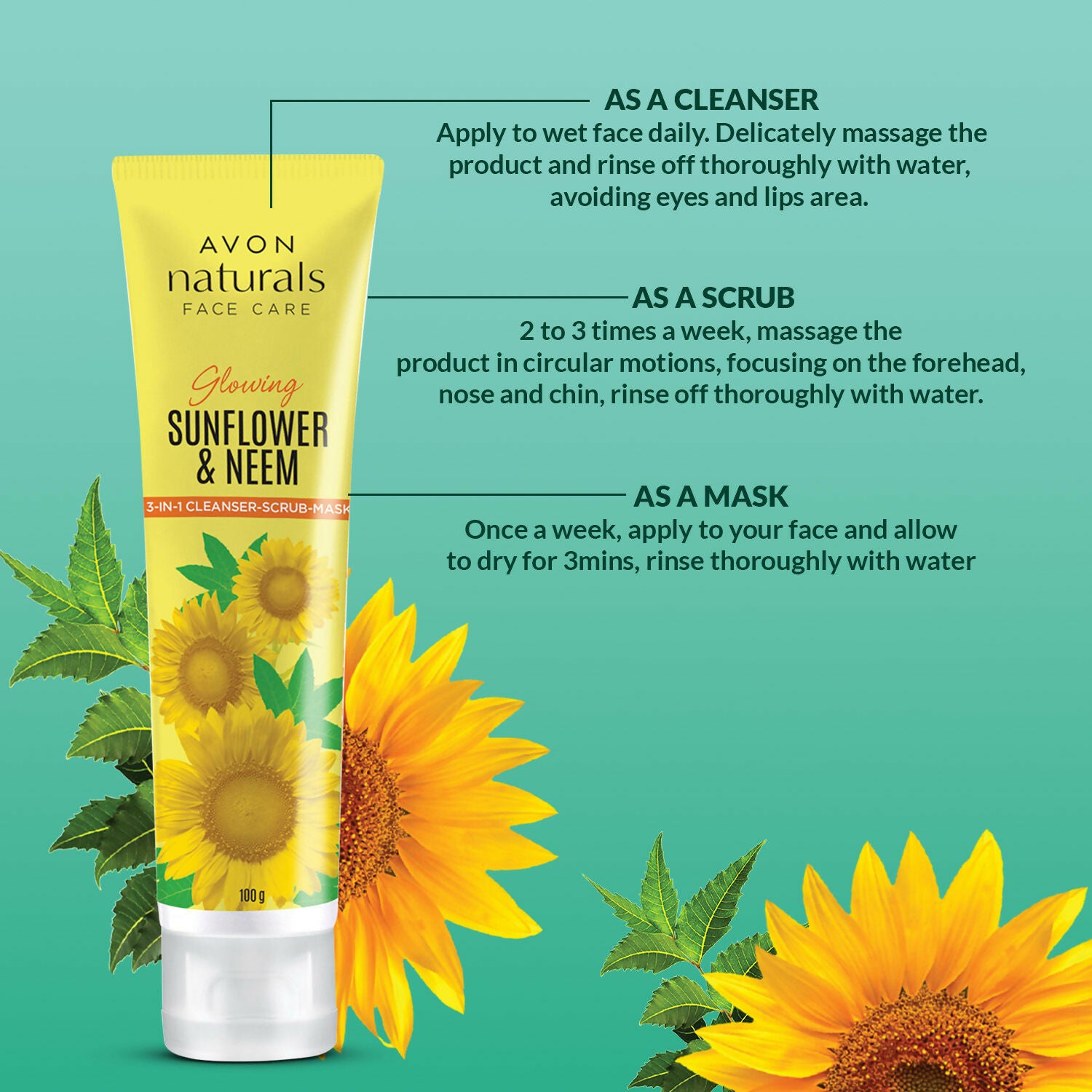 Avon Naturals Sunflower & Neem 3 In 1 Cleanser Scrub MaskAbout the product:Discover the superpower of Ayurveda with this 3 in 1 cleanser-scrub-...