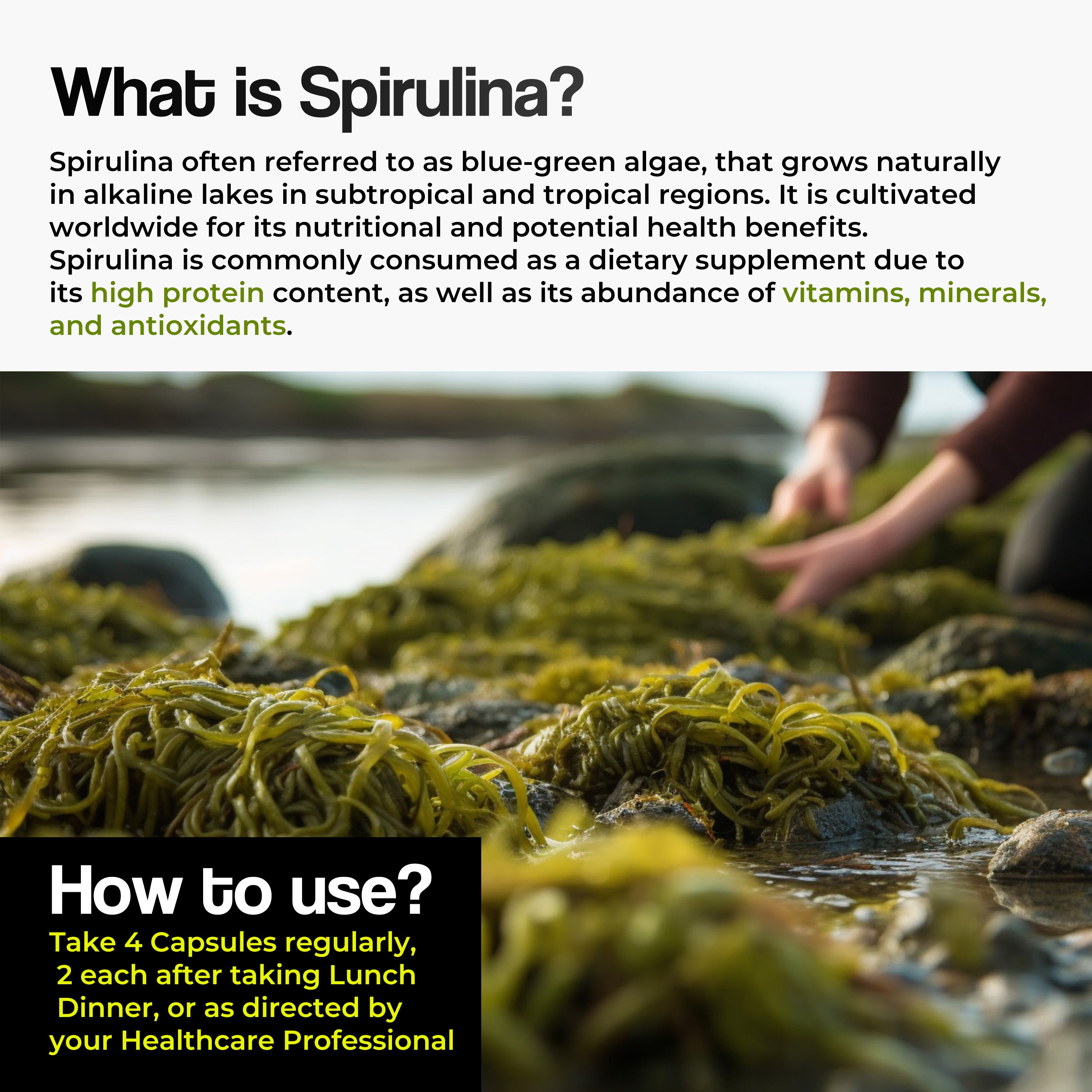 Health Veda Organics Spirulina Capsules How to Use: Take 4 Capsules regularly; 2 each after taking Lunch & Dinner, or as directed by your Healt...