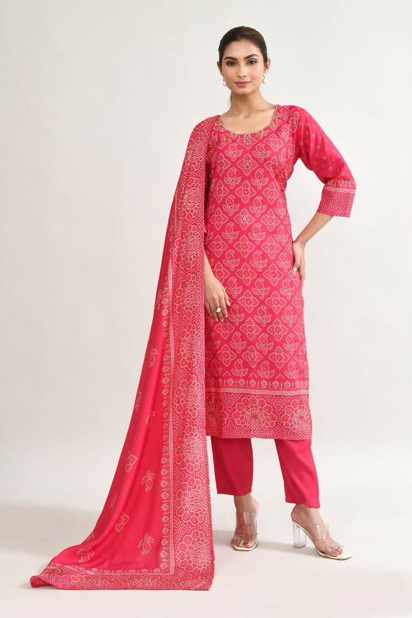 Joban Fashion Rani Pink Muslin Kurta Set Material Type : Muslin Stone Type : Cutdana Resham Work : Printed With Cutdana Resam Color : Rani Pink...
