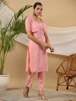 Juniper Women's Peach Geometric Printed Rayon Kurta Pants & Jacket With Sequins Work