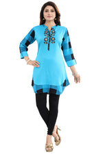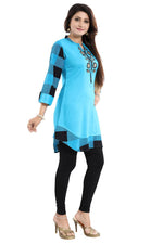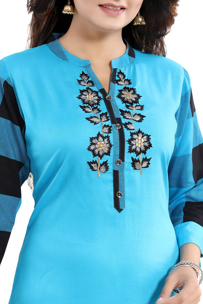 Snehal Creations Rayon Designer Embroidery Blue Tunic