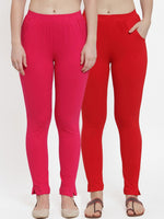 TAG 7 Women Pack Of 2 Red & Pink Solid Straight-Fit Ankle-Length Leggings - Distacart
