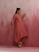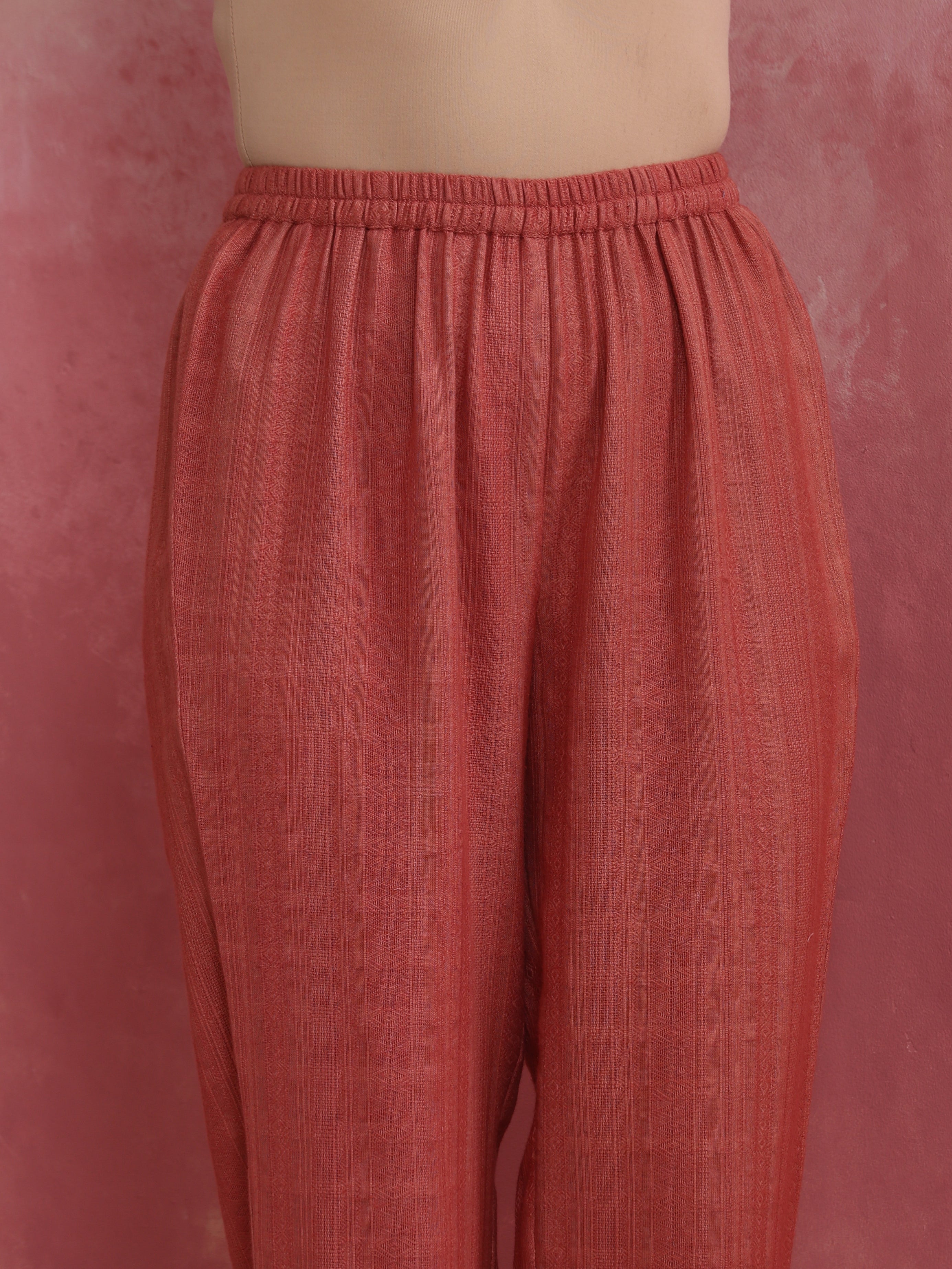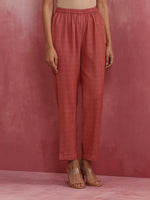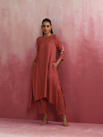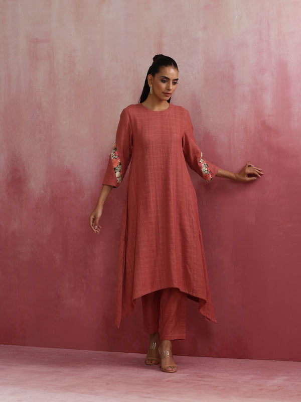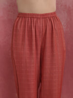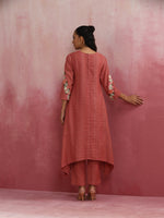 trueBrowns Peach Cotton Dobby Kurta Set - XS