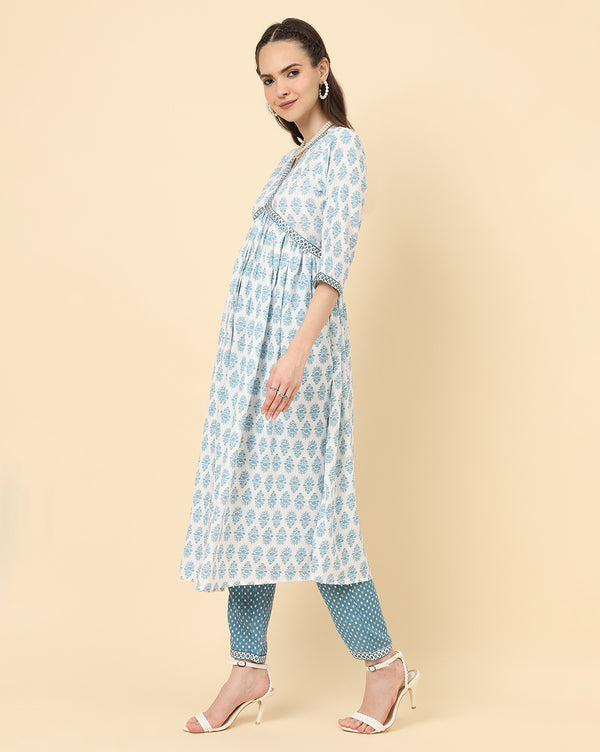 Varanga Women White Viscose Rayon Printed Regular Kurta With Trousers & Dupatta - S