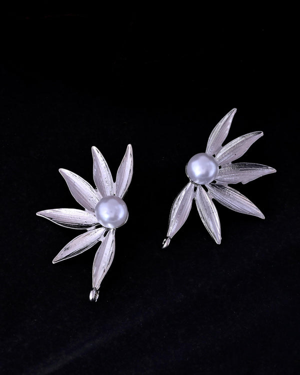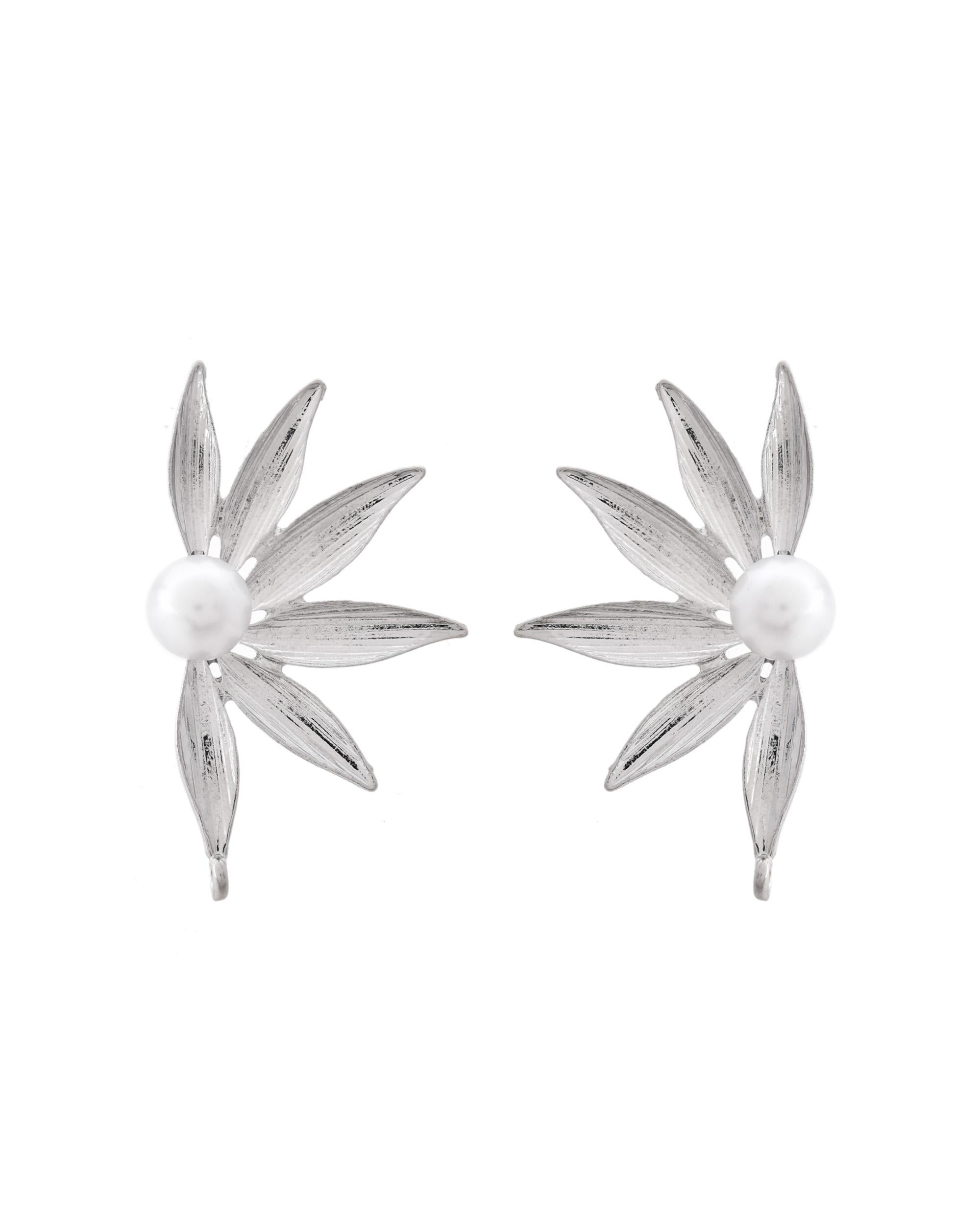 VOJ Silver Plated Stainless Steel Pearl Flower Shaped Studs - Distacart