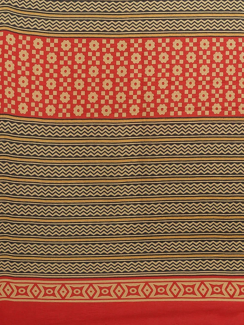 Yufta Black Printed Saree PRODUCT DETAILS: Design Details Black saree Ajrak block printed saree with solid border The saree comes with an unstitc...