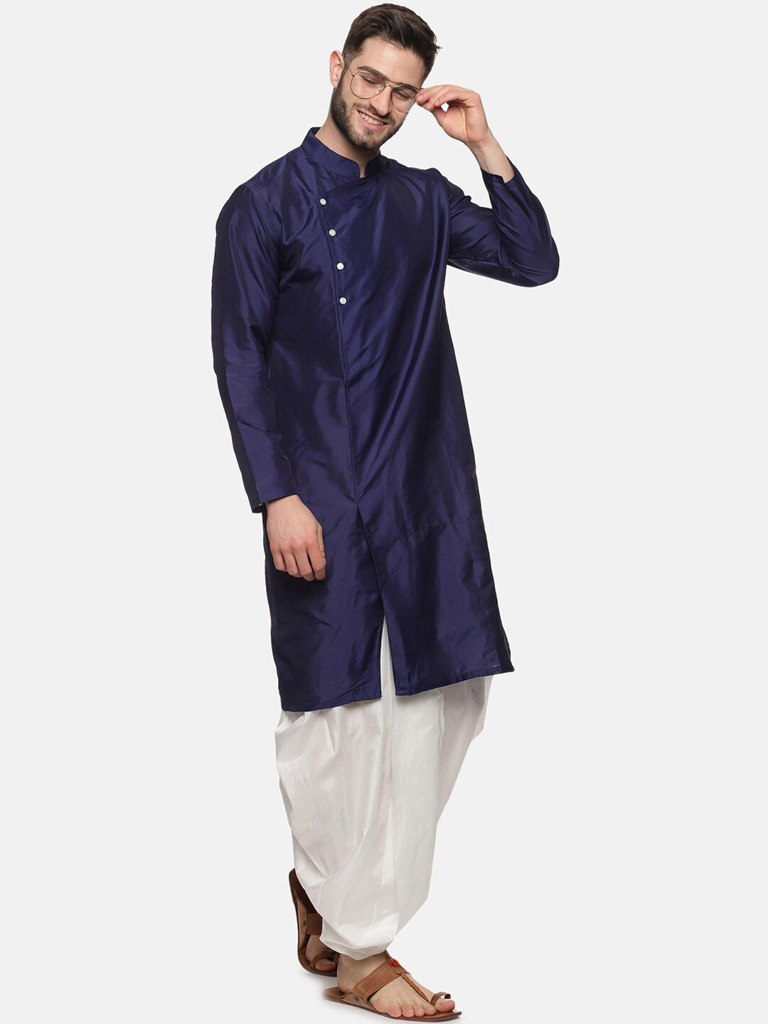 Sethukrishna Men Navy Blue Angrakha Kurta with Dhoti Pants