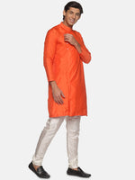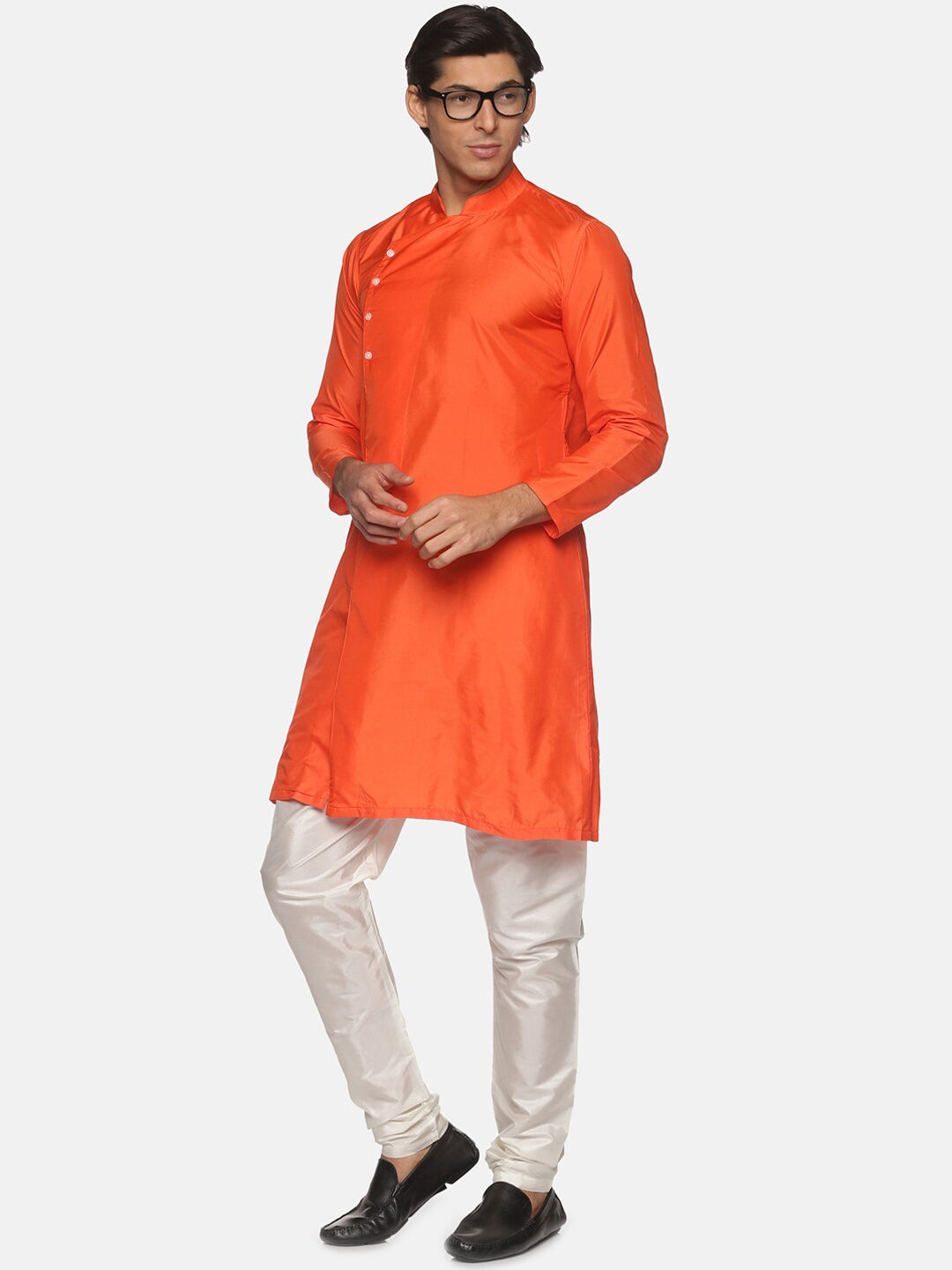 Sethukrishna Men Orange Angrakha Kurta with Churidar - S