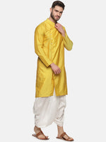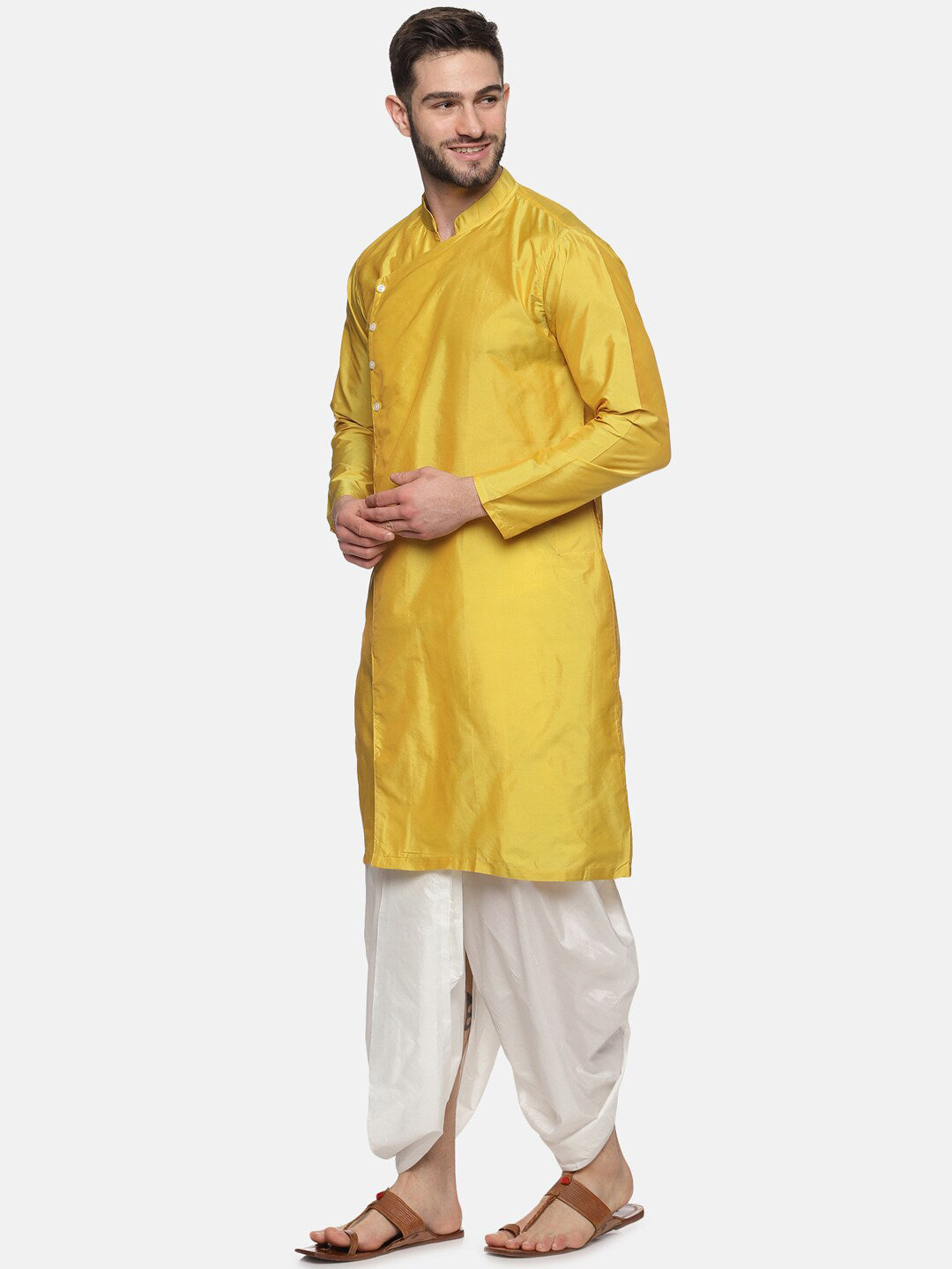 Sethukrishna Men Yellow Angrakha Top with Dhoti Pants - S