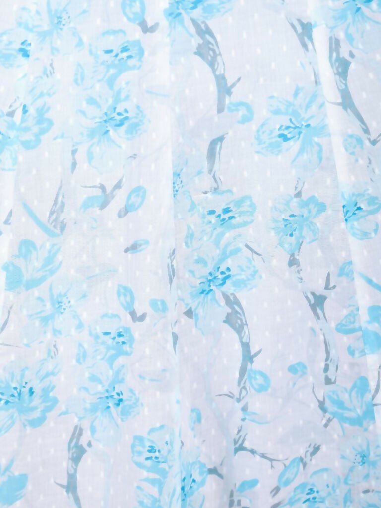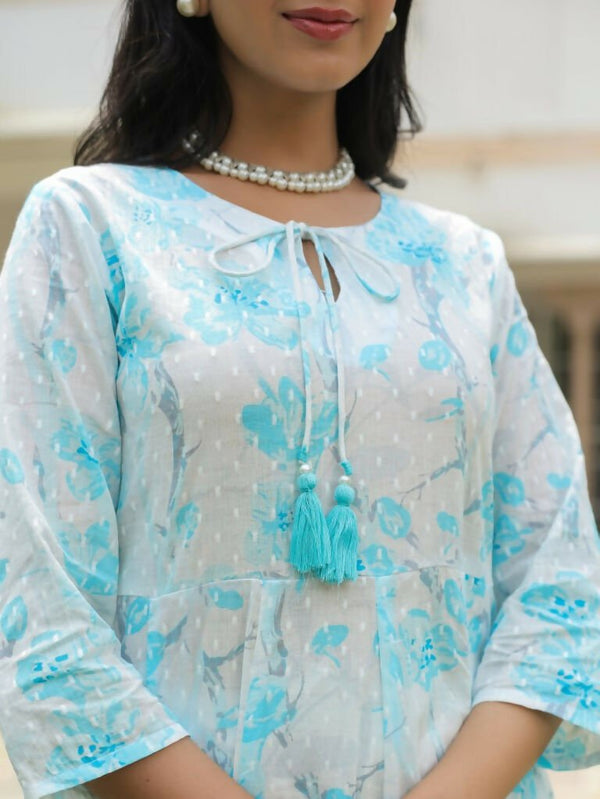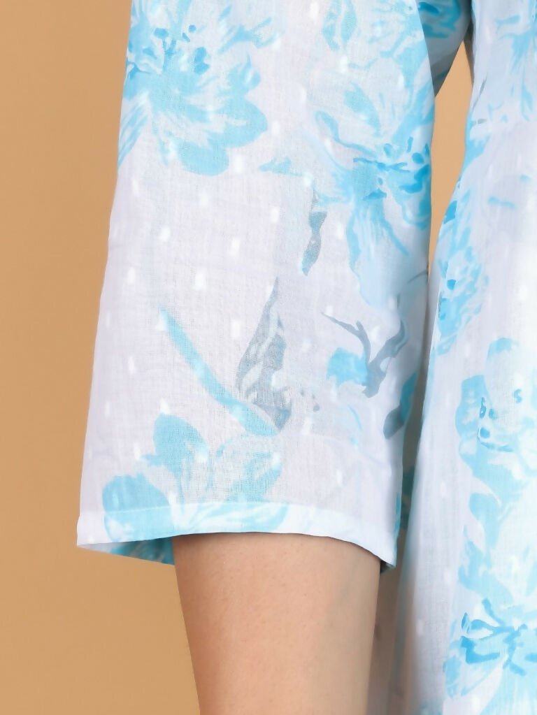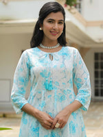 Aramya Flared Textured Cotton Floral Print Women's Kurta - White
