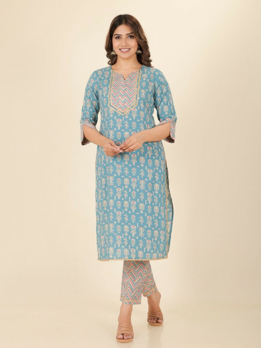 Aramya Straight Soft Cotton Floral Print Women's Kurta - GreenElevate your style with our uniquely designed kurta, perfect for daily wear or casual...