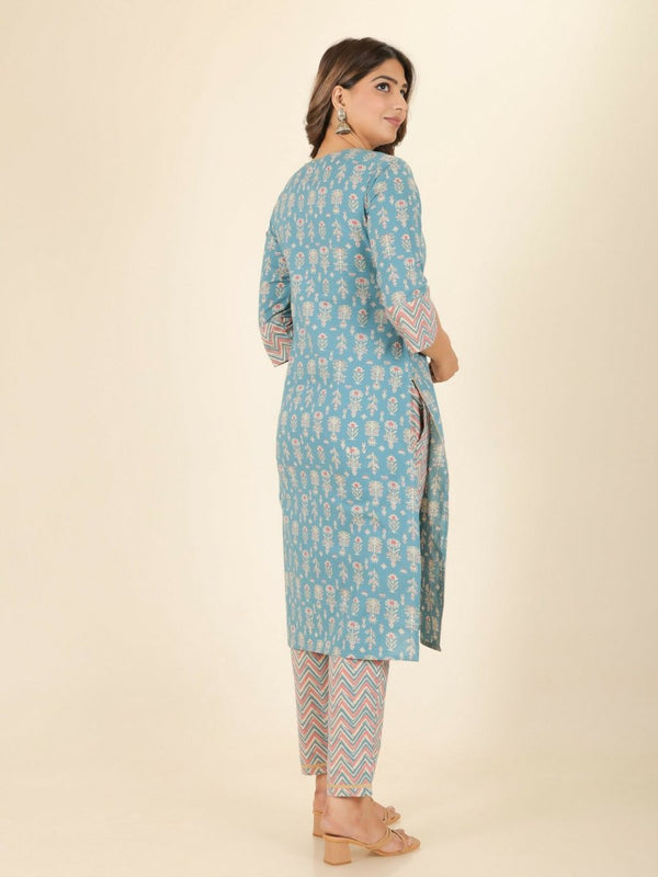 Aramya Straight Soft Cotton Floral Print Women's Kurta - Green - M