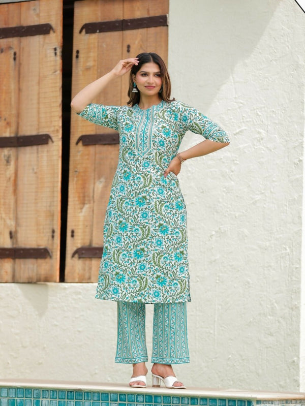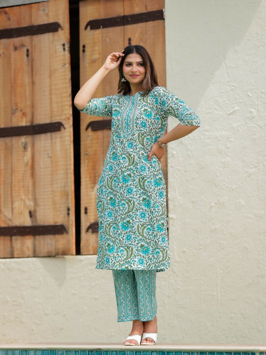 Aramya Straight Soft Cotton Floral Print Women's Kurta - TurquoiseElevate your style with our uniquely designed kurta, perfect for daily wear or ca...