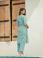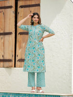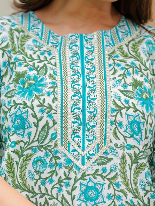 Aramya Straight Soft Cotton Floral Print Women's Kurta - Turquoise