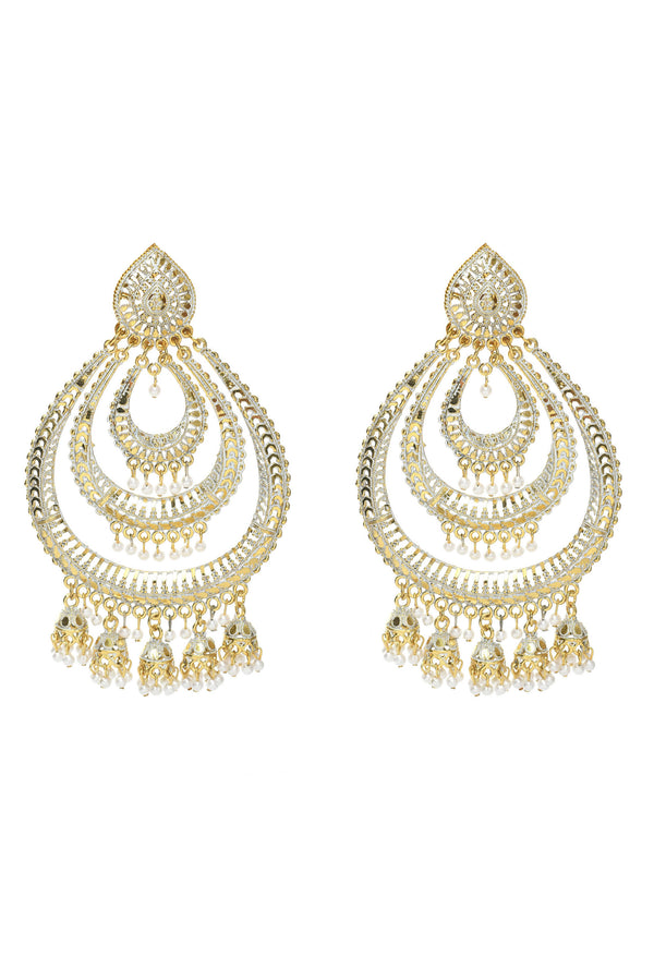 Mominos Fashion Johar Kamal Triple Circle White With Red Golden Big Size Earrings - Distacart